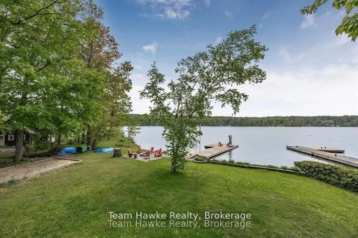 +"PublicRemarks": "Escape the city and embrace lakeside living! Located 15 minutes from Penetanguishene and under 2 hours from the GTA, this exceptional four-season lakefront home is nestled on a beautifully landscaped 3/4 acre lot with hundreds of feet of private shoreline. The calm, swimmable waters and shallow sandy entry create warmer temperatures that are ideal for families; a highly sought-after feature compared to larger, busier lakes. Offering just under 2,400 square feet of finished living space, this spacious and thoughtfully designed home features 3 bedrooms and 3 bathrooms, perfectly suited for full-time living or a luxury recreational retreat. The main-floor primary suite includes a private ensuite and custom built-in wardrobes, while the open-concept living and dining areas flow seamlessly into an enclosed, lake-facing sunroom with southeastern exposure - the perfect place to enjoy morning light and lake breezes. Sunroom windows can be removed for summer use, with screens remaining in place for convenience. The kitchen offers generous counter space, ample cabinetry, and a built-in dishwasher. The walkout basement features an additional bedroom and two versatile bonus rooms, perfect for guests, a home gym, office, or hobby area, as well as a freshly renovated 2 piece bathroom. Outdoor living here is equally impressive. Relax in the hot tub, gather around the fire pit, or enjoy games on the bocce ball court, or horseshoe pits located on the point. The fully insulated and heated detached double garage (approximately 800 sq ft) is an entertainer's dream, complete with a bar, table games and lounge, making it the ultimate year-round hangout space. Additional highlights include a private dock, large paved driveway, forced-air gas heating, and central air conditioning for year-round comfort. Best of all, this turnkey waterfront property is being sold fully furnished, simply bring your swimsuit and start enjoying lake life from day one."