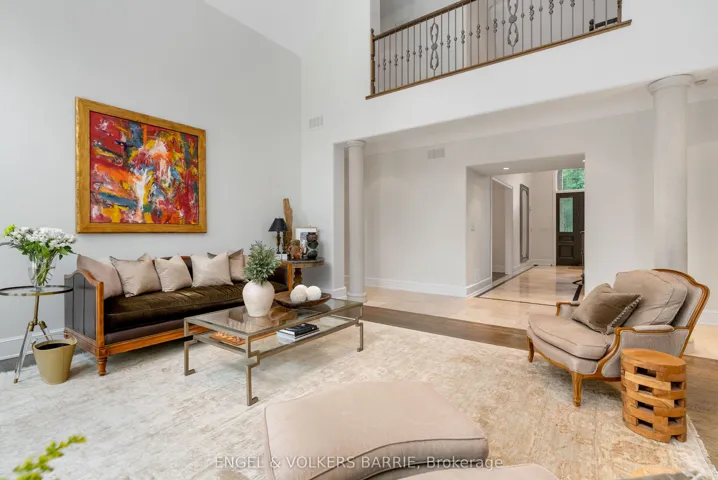 +"PublicRemarks": "Welcome to one of Midhurst's most prestigious addresses - Midves Court. This custom built estate sits on nearly 2 acres of private, landscaped grounds with a circular driveway, triple garage, and over 8000 sq ft of luxurious living space. Designed with elegance and function in mind, the home features 5 beds, 6 baths, and high-end finishes throughout. The main floor includes a spacious great room with soaring 20+ ft vaulted ceilings and a grand wood burning fireplace - one of five throughout the home. The chefs kitchen boasts Thermador appliances, granite counters, and an oversized island, all open to a bright family room with full height windows. A formal dining room, private office with gas fireplace, and stunning entryway with curved staircase and additional second staircase complete the main level. The main floor primary suite offers comfort and accessibility, with large windows, a walk-in closet with custom millwork, 5-pc ensuite with jacuzzi, and direct walkout to the backyard and pool. Upstairs are 3 spacious bedrooms, each with ensuite bathrooms and large closets, including a second primary suite with dual closets and a fully renovated spa bath. A rare upper level lounge provides a perfect hangout for kids or guests. Enjoy indoor-outdoor living with approx.1500 sq ft of decking, multiple seating areas, BBQ gas line, and a resort style saltwater pool with waterfall, retaining wall, and pool house. The yard includes a fire pit, expansive lawn, and space for a future tennis or sports court - framed by mature trees and gardens for total privacy. The finished lower level impresses with 12-ft ceilings, a games area, gym with mirror and padded flooring, full bath, and abundant storage. Additional features include fresh paint throughout, hardwood upstairs, epoxy garage floors, UV and reverse osmosis water filtration, Sonos sound, and a full security system. A rare offering in the heart of Midhurst, minutes to Barrie, hwy 400, top rated schools and all amenities."