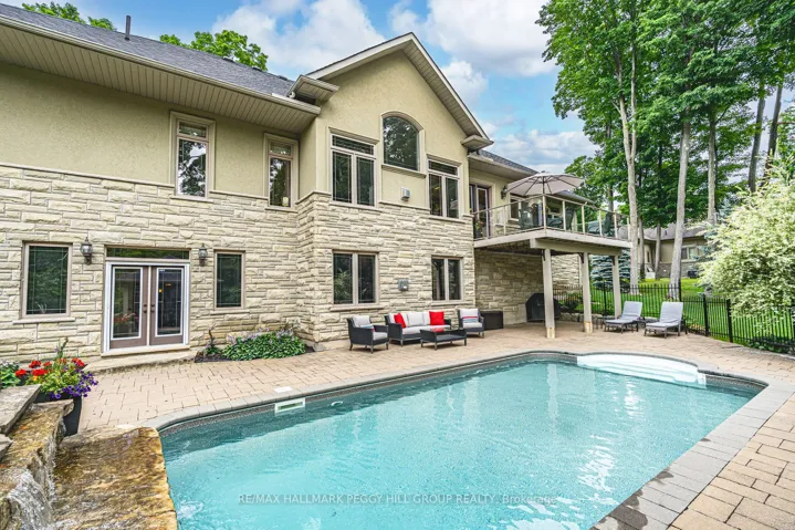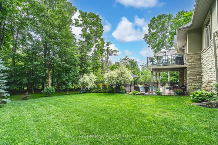 +"PublicRemarks": "LUXURIOUS 5400 SQFT BUNGALOW WITH A TRIPLE CAR GARAGE, W/OUT BASEMENT & AN ENTERTAINER'S DREAM BACKYARD FEATURING A SALTWATER POOL WITH WATERFALL, POOL HOUSE WITH WET BAR & COVERED PORCH, BEAUTIFUL LANDSCAPING WITH FIREPIT & GARDENS BACKING ONTO GREEN SPACE ON 1.25 ACRES! Tucked away at the end of a tree-lined driveway on the renowned Gallagher Cres, this estate offers over 5,400 fin sqft of living space on more than an acre of privacy, luxury, and lifestyle in one of the area's most prestigious neighbourhoods. Surrounded by custom homes and just minutes to parks, trails, schools, golf, skiing, and Hwy 400, this stately stone and stucco residence commands attention with its stunning curb appeal, beautiful gardens, and oversized triple car garage. The backyard is an entertainer's dream, featuring an inground saltwater pool with a newer liner and a stone waterfall, a fire pit, and a pool house complete with a covered porch, all surrounded by extensive interlock. Step inside to discover quality finishes throughout, including crown moulding, wood doors, detailed trim, hardwood floors, and pot lights. The elegant great room presents vaulted ceilings and a gas fireplace, while the formal dining room features a coffered ceiling. The chef's kitchen is magazine-worthy with granite countertops, a large island, stainless steel appliances including a built-in oven and stovetop, cabinetry topped with crown moulding, a striking wood range hood, and a walkout to the balcony. The main level features 4 spacious bedrooms, including a primary suite with a 5-pc ensuite and a walk-in closet with custom organizers. One bedroom includes a private ensuite, while the other two are connected by a shared bathroom. The finished walkout lower level adds a rec room with a wet bar, a gas fireplace, a theatre room, a gym area, an additional bedroom with built-in wardrobes, and a 3-pc bathroom. Crafted for those who value exceptional living, this is a #Home To Stay that exceeds every expectation!"