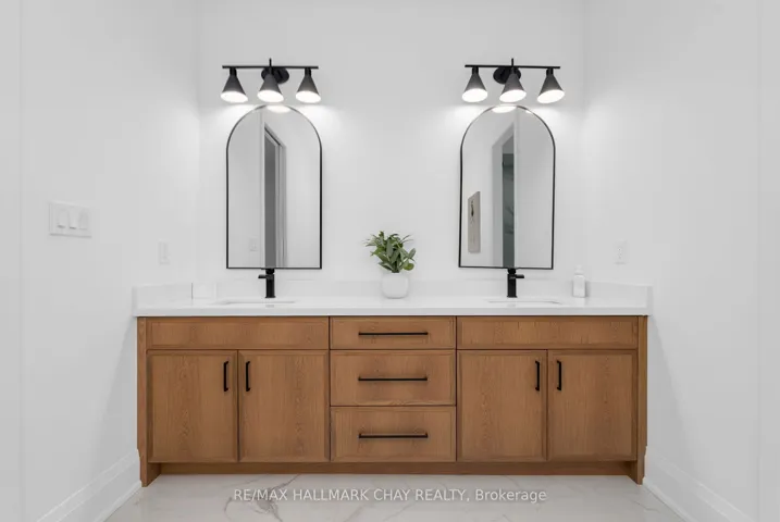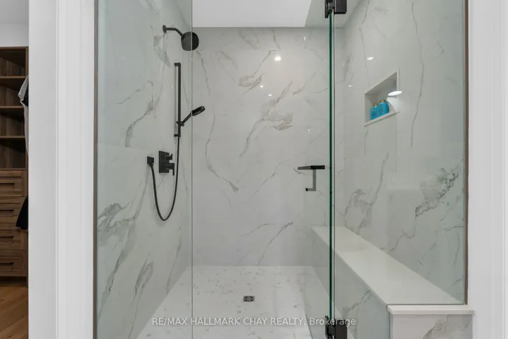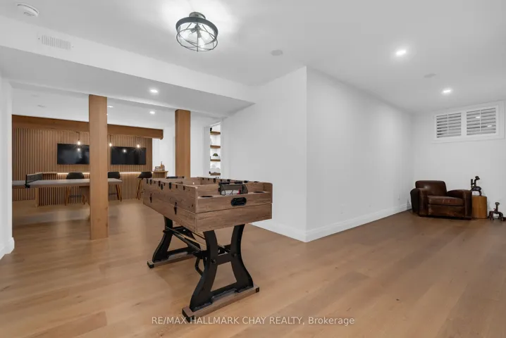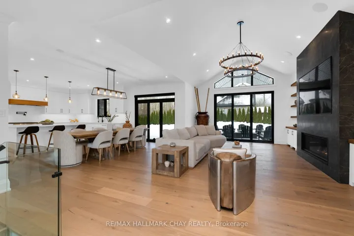 +"PublicRemarks": "PRESENTING luxury, lifestyle, privacy, and an exquisite location-all embodied in this stunning custom executive residence in Springwater's prestigious, family centric Cameron Estates. Set on a premium half acre corner lot, this exceptional bungalow offers 5,700+ sq.ft. of finished living space and an oversized 133'x187' private backyard framed by mature cedars and one of the community's largest reclaimed greenspaces. With over $550K in recent updates/upgrades, this home delivers an elevated living experience inside & out. The main level showcases a designer Chef's kitchen with expansive prep space, oversized island with integrated beverage centre, premium Jenn Air 6 burner + griddle range, dual ovens, Dacor fridge/freezer, and walk in pantry with prep sink. Great room impresses with a striking 63" floor to ceiling gas fireplace, vaulted ceilings, and wall to wall views of the private rear yard. Additional main floor features include a dedicated home office, guest 2 pc bath, spacious laundry/mudroom, and three generous bedrooms-each with its own ensuite and walk in closet. The full, finished lower level doubles the living space and continues the home's refined neutral palette. Purpose built for relaxation and entertainment, this level features a spa inspired steam room, home gym with heated padded flooring, guest suite, custom four queen designer bunk room, rec room with linear fireplace and built ins, games room, home bar, office, soundproof gaming room, and additional 2 pc bath. Energy efficient water heated flooring runs throughout. Smart home conveniences include whole home audio (14 zones, 7 Sonos amps, 37 speakers), remote electric blinds, 7 camera security system, wall mounted TVs, and Bell Fibre internet. Car enthusiasts will appreciate the oversized 1,600+ sqft heated 5 vehicle garage, complete with epoxy floors, storage, EV ready wiring, built in audio/TV, pressure washer system, direct basement access with mud room, and rear garage door to the backyard."