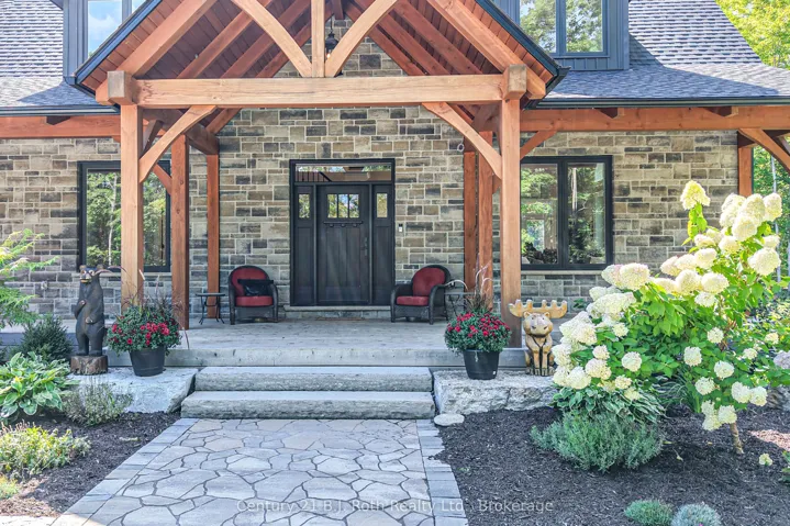 +"PublicRemarks": "One-of-a-kind modern Craftsman nestled among the trees offering ultimate privacy on a 50-acre property. Welcoming covered entry w/rich stonework & Douglas Fir Timber frame accents sets the tone for exceptional living space within. Step inside to the Great rm. w/natural light, soaring ceilings & open-concept layout, perfect for both family life & entertaining. Custom solid maple Kitchen cabinetry w/Quartz countertops & centre island. The kitchen flows seamlessly into the dining area & great room, complete w/a cozy fireplace & expansive windows overlooking the surrounding forest. Walkout to deck & above-ground pool w/54" walls. Main floor Primary suite w/walkout, Ensuite w/heated floors, soaker tub, sep. tile shower, & quartz-topped vanity plus Walk-in closet. Main flr. 2pc powder rm, laundry, & a spacious mudroom w/walkout to a covered Douglas Fir and Cedar deck, plus direct access to the garage. Upstairs in the main part of the home, you'll find 2 additional Bdrms., a 4 pc. bath, dormer-lit living spaces, & a versatile loft area, ideal for a home office or studio. Above the garage, a second upper living space provides a large family room, perfect for gatherings. 3-car garage offers ample parking & storage w/9 x 8 doors, side-mount openers w/deadbolt locks. While roughed in for in-floor heating, the incoming heat line from the outdoor wood furnace keeps the garage warm during the winter months. The garage includes a man door to the side yard & direct access to both the main floor & basement. Whether relaxing on the front porch or covered back deck, hosting gatherings, exploring the trails, or simply enjoying the quiet surroundings, this property delivers the perfect balance of elegance, comfort, and rustic charm in a serene country retreat. 200-amp service, LED pot lights, 22KW Generac whole-home generator. Upgraded BIBS insulation. Outdoor wood furnace, plus propane forced-air heating & central air. ICF Construction-foundation to top of main floor (incl. Garage)"