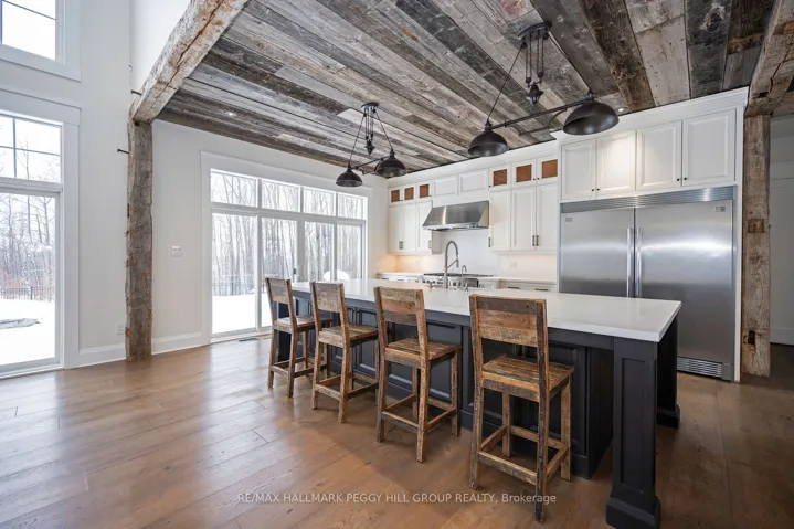 +"PublicRemarks": "CUSTOM BUILT ESTATE ON 1.5 ACRES WITH NEARLY 7,100 SQ FT, 2 TRIPLE CAR GARAGES, INGROUND SALTWATER POOL, HOT TUB & WOOD-FIRED SAUNA! Take a seat before you scroll, because this Snow Valley estate delivers a triple-car garage on a core slab with a hidden triple-car garage below, nearly 7,100 fin sq ft, and a backyard that feels like a private resort. This custom-built home sits on a 1.5-acre lot backing onto EP land and showcases a heated inground saltwater pool, landscaping, a 2,000 sq ft patio, a wood-fired barrel sauna, a hot tub, soffit lights and a gas BBQ line. Across the main level, 10-ft ceilings and wide plank hardwood frame the kitchen with white cabinets, a 12-ft island, a double quartz sink, high-end appliances, a reverse osmosis system, a walk-in pantry and a walkout. The great room elevates the space with a 25-ft ceiling, double-sided Napoleon gas fireplace wrapped in floor-to-ceiling brick and 2 sets of sliding doors. The main floor also offers an office with a fireplace and a walkout, along with a laundry/mud room with a pet wash station, a heated floor, a garage entry and an exterior door. The primary suite showcases 2 walk-in dressing rooms, a balcony and an ensuite with a soaker tub, glass shower, double vanity and a heated floor, while 4 additional bedrooms offer walk-in closets and access to shared and private ensuites. The walkout lower level is designed for staying in, with a bar and recreation zone featuring a beverage fridge, seating for 8, built-in cabinets, display shelves, pot lights, a natural stone sink, brick feature walls, a home theatre, and a separate fitness room. Located within walking distance to Snow Valley Ski Resort, mins to Vespra Hills Golf, approx 10 mins to Barrie, under 30 mins to Wasaga Beach and 45 mins to Collingwood, Orillia and Vaughan. Additional highlights include 2 furnaces, 2 air conditioners, 2 laundry rooms, water treatment, 2 humidifiers, a whole home generator, fibre internet, EV chargers and Blink cameras."