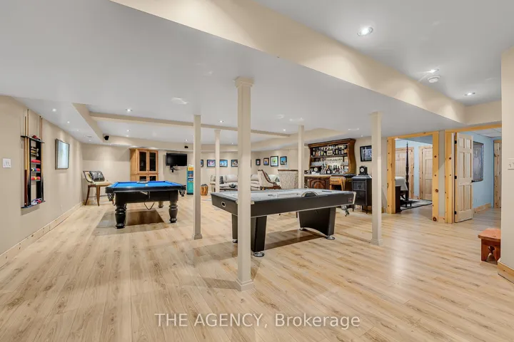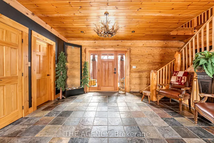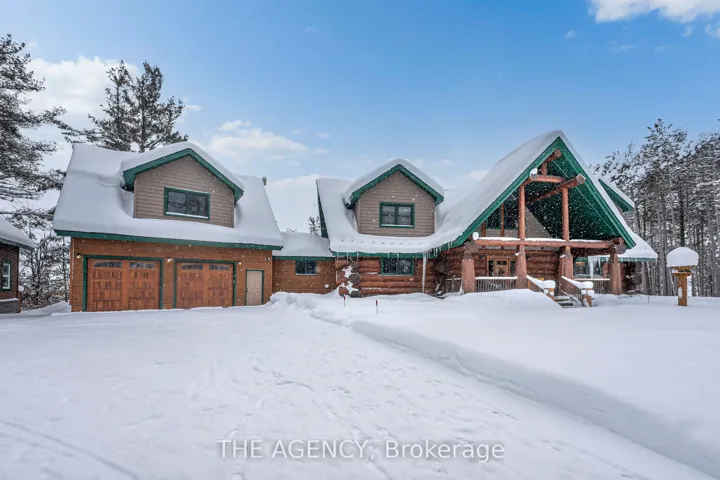 +"PublicRemarks": "Set apart by timeless craftsmanship and natural beauty, this one-of-a-kind custom-built log home is privately situated at the end of a quiet cul-de-sac on 2.1 acres of mature, tree-lined grounds. This exceptionally unique residence boasts nearly 6,000 SF of refined living space that blends rustic elegance with modern comfort. Designed for both grand entertaining and everyday living, the home features 6 bedrooms and 4.5 bathrooms, complemented by an energy-efficient geothermal system and the low-maintenance beauty of hand-peeled Western Red Cedar. The stunning great room showcases soaring vaulted ceilings and a dramatic stone fireplace. This space flows seamlessly into a chef-inspired kitchen with granite countertops, stainless steel appliances, alongside a welcoming dining area ideal for intimate meals or large gatherings. The main-level primary suite features a private retreat complete with a walk-in closet and spa-like ensuite. Additional highlights include an upper-level den with scenic treetop views, beautifully appointed ensuite bedrooms for family and guests, and a radiant-heated lower level perfect for year-round entertaining or relaxation. An attached heated garage with smart openers is enhanced further by an impressive 650 SF loft making it ideal for a home office, studio, creative space or additional storage. Embrace the sights and sounds of the outdoors on the new 1,100 SF deck which spans the entire rear side of the home. The well-appointed grounds showcase professionally landscaped armour stone walkways and gardens as well as a detached 3rd garage. Delivering the perfect balance of privacy and convenience, this year-round retreat is located just a short drive from Barrie and only one hour from Toronto. With easy access to nearby lakes, trails, Horseshoe Valley Ski Resort, Vetta Spa, and other seasonal recreation destinations, this extraordinary property delivers an unparalleled lifestyle of comfort, beauty, and tranquility."