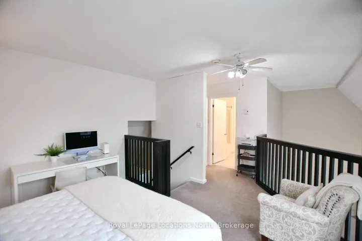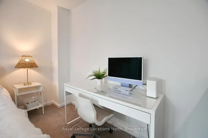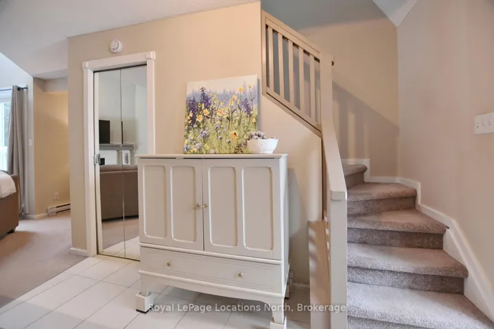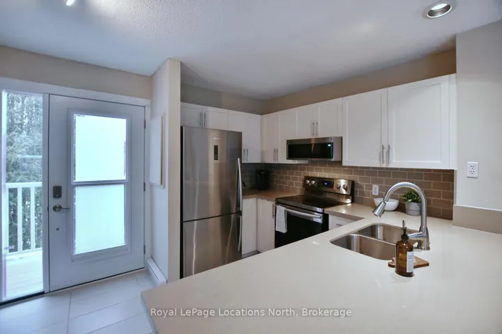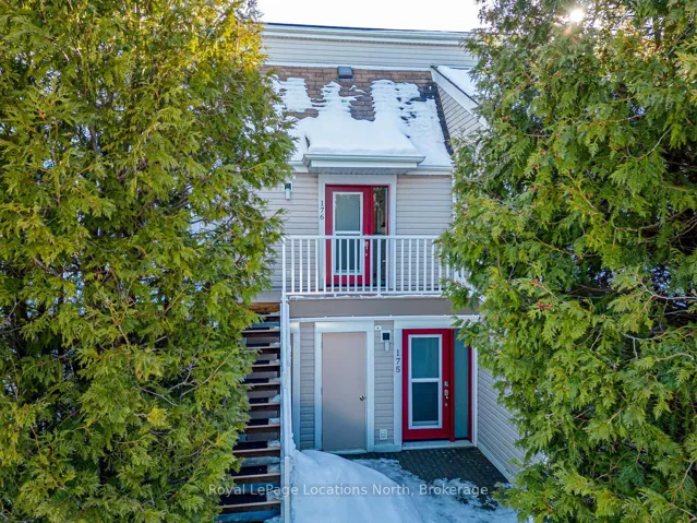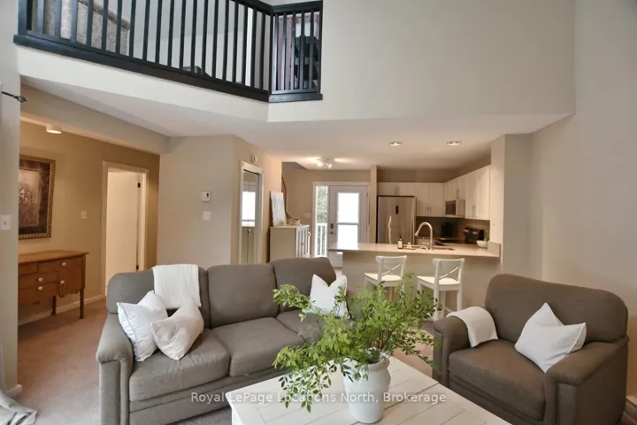 +"PublicRemarks": "Welcome to this beautifully updated 2 bedroom, 2 bathroom condo nestled in one of Collingwood's most desirable and peaceful settings. Perfectly positioned close to the water, ski hills, scenic trails, and vibrant downtown, this home offers the ideal balance of privacy, convenience, and four-season living. Set well away from traffic noise, the unit enjoys a quiet, treed backdrop with a large private deck overlooking mature trees - an ideal space to relax, entertain, or simply enjoy the natural surroundings. Whether sipping morning coffee or unwinding after a day on the trails, this outdoor area adds exceptional value and tranquility. Inside, the open-concept layout is bright and inviting, enhanced by vaulted ceilings that create a spacious and airy feel. Large windows flood the space with natural light, making the living areas feel warm and welcoming throughout the day. A cozy fireplace anchors the main living space, offering comfort and charm during cooler months. The thoughtfully designed floor plan provides excellent separation of living and sleeping areas. The main floor bedroom features has access to aa full bathroom, creating a private retreat, while the unique lofted second bedroom adds architectural interest and versatility - perfect for guests, a home office, or a cozy den. Kitchen and main bathroom have been tastefully updated, complementing the home's overall modern yet comfortable aesthetic. Well maintained and move-in ready, this condo is ideal as a full-time residence, weekend escape, or investment opportunity. Enjoy easy access to Georgian Bay, Blue Mountain, local shops, restaurants, and recreational amenities, all while coming home to a quiet, private setting surrounded by nature. A rare opportunity to own a bright, stylish condo in a prime Collingwood location - offering comfort, privacy, and lifestyle in one exceptional package. Book your tour now!"
