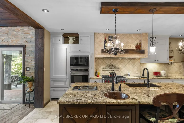+"PublicRemarks": "Discover a one-of-a-kind Barndominium that is a perfect blend of timeless luxury and rustic character. Nestled within a lush, tree-lined sanctuary, this property boasts 3.88 acres of meticulously maintained grounds, complete with circular driveway and attached garage. Relax outside in the in-ground heated pool, featuring a 9-foot deep end, accompanied by a rejuvenating hot tub. Entertain effortlessly in the full outdoor kitchen, situated under a striking barn beam enclosure, equipped with premium amenities including a Lynx double pro searer, outdoor fridge, quartz countertops, and a restaurant-quality stainless steel island cabinet. Spanning over 4,300 square feet, the residence showcases exquisite high-end finishes and original barn elements. The refinished wide-plank floors harmonize with limestone and porcelain tiles throughout the main floor. The chefs kitchen is outfitted with granite counters, top-tier Wolf appliances including 6 burner gas stove, warming drawer, in-counter deep fryer and steamer and Sub-Zero refrigerator and freezer. The four-season Muskoka room, complete with in-floor heating, serves as a tranquil retreat year-round. The primary suite offers engineered hardwood flooring, a spacious walk-in closet, and breathtaking 5-piece ensuite with extraordinary stonework, soaker tub and walk-in shower. Two additional hayloft bedrooms share a beautiful 4-piece bathroom, while a large finished loft presents endless possibilities as an extra bedroom, play room, or hobby room. The fully finished basement with garage access, features a wet bar and rec area with wood burning fireplace and full bathroom with a unique stone shower and laundry. Geothermal heating and cooling ensures energy efficiency throughout. Completing this remarkable offering is a versatile 30x20 barn equipped with water and hydro. With unlimited character and unparalleled privacy, this extraordinary Barndominium invites you to experience luxurious country living like never before."