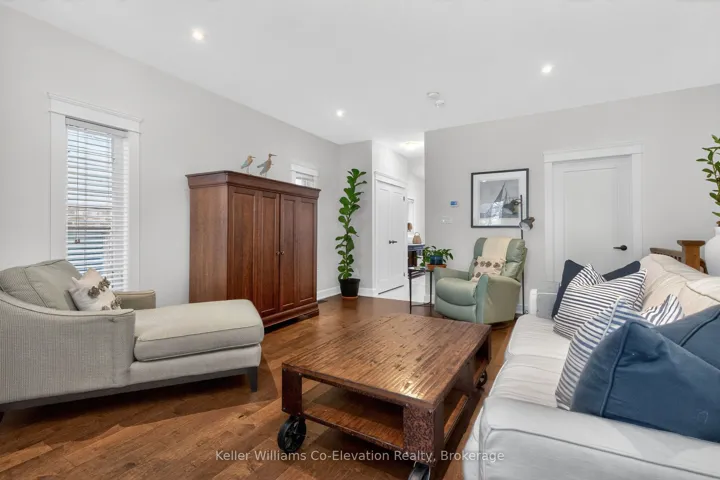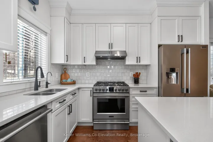 +"PublicRemarks": "Over $75,000 in documented upgrades set this home apart. Welcome to 1046 Cook Drive in The Grove, a sought-after Craftsman-style neighbourhood in Midland's desirable west end. Built in 2016 by award-winning Devonleigh Homes, this one-owner, meticulously maintained home sits on a premium lot backing onto a forested buffer zone for added privacy. This home includes over $50,000 in builder upgrades plus $26,000+ in additional improvements, making it truly move-in ready and well above typical comparables. Interior features include 9-foot ceilings, upgraded engineered hardwood flooring, Craftsman trim and oak staircase details, upgraded door hardware, and pot lighting in the living room and kitchen. The kitchen offers tall cabinetry with crown moulding, Cambria quartz countertops and island, extended breakfast bar, new zellige tile backsplash, stainless steel hood fan, and upgraded garden doors leading to a beautiful stamped concrete patio. The primary bedroom includes a walk-in closet and upgraded ensuite with air-jet tub and porcelain tile. Main-floor laundry features new cabinetry (2025) and Maytag front-load washer and dryer. The landscaped yard includes perennial gardens, privacy fencing, leaf-guard gutters, updated outdoor lighting, and a large stamped concrete patio overlooking the treed backdrop. Additional highlights include Frigidaire Professional stainless steel appliances with gas range, Lennox central air, insulated and drywalled garage with inside entry, water softener (2023), Kinetico K5 reverse osmosis system (2024), custom soundproofing on adjoining walls, and a high, dry unfinished basement with oversized windows, gas fireplace rough-in, and roughed-in 3-piece bath. This 2-bedroom, 2-bath home offers easy main-floor living with no condo fees, walking distance to shopping, hospital, restaurants, and theatre, and close to trails, parks, beaches, and Georgian Bay. Pride of ownership is evident throughout."