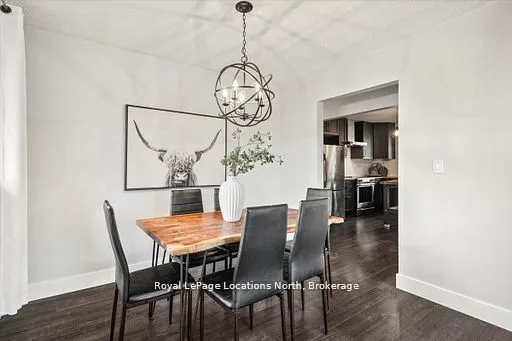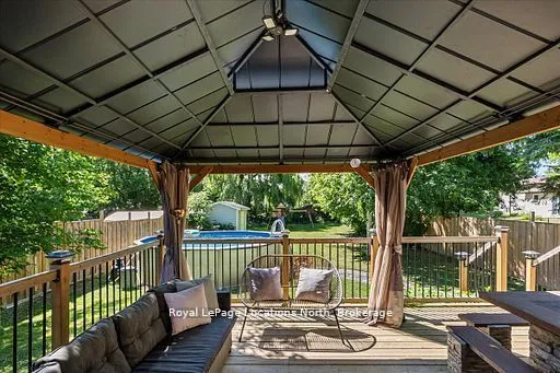 +"PublicRemarks": "Located in the heart of downtown Stayner and within walking distance to shops, dining, and amenities, this raised bungalow offers flexibility that's hard to find. The home sits on a deep 217-foot lot with mature trees, providing a private backyard and outdoor space rarely available in such a central location. A large wraparound deck off the kitchen overlooks the yard and is perfect for entertaining or relaxing outdoors.The main floor includes 3 bedrooms, a full 4-piece bathroom, a bright living room with fireplace, and a kitchen with stainless steel appliances just off the dining area.The fully finished lower level is where this home truly shines, featuring a spacious rec room, gas fireplace, second full kitchen with bar seating, an additional bedroom, full bathroom, and office nook. This layout offers excellent potential for multi-generational living, in-law accommodation, or added flexibility for extended family and guests."