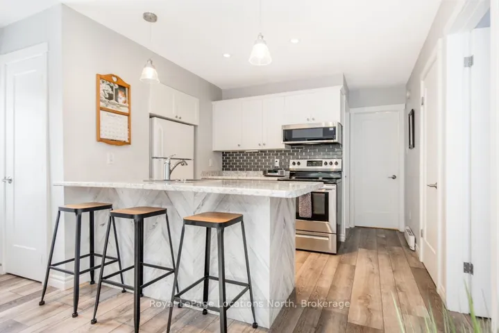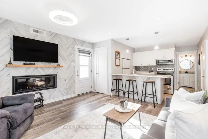 +"PublicRemarks": "Spectacularly refinished 2-bedroom, 2-bath Glen II condo in the sought-after Living Stone Resort community in Collingwood. Updated from top to bottom, this inviting residence offers a perfect blend of comfort, style, and four-season living. The bright, open-concept kitchen and living area is ideal for entertaining or relaxing after a day on the slopes, featuring a stunning gas fireplace with an elegant feature wall. Extensive upgrades include new flooring throughout, updated lighting, new trim and doors, and beautifully refreshed kitchen and bathrooms. The spacious primary suite is a true retreat, offering a walkout to a large private balcony, a walk-through closet with custom built-in cabinetry, and a newly remodelled ensuite. The second bedroom is perfectly sized for guests, with a full bathroom conveniently located near-by. A full-size laundry room off the kitchen adds everyday practicality. Enjoy enhanced year-round comfort with new split AC/heat units in the main living area and primary bedroom. Located just minutes from ski hills, golf courses, scenic trails, Georgian Bay, and downtown Collingwood, this condo delivers exceptional access to everything the area has to offer. Optional membership to the Atoka Club provides access to a gym, pools, and tennis courts. Whether you're a weekend retreat seeker, investor, or first-time buyer, this beautifully updated condo is an outstanding opportunity to embrace the four-season lifestyle in Collingwood."