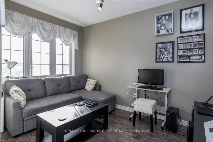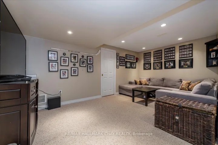 +"PublicRemarks": "Fantastic 4-bedroom, 4-bathroom, 2,923 finished sq.ft family home tucked away on a quiet, family-friendly court in sought-after South Barrie. Curb appeal shines with an all-brick exterior, double garage with inside entry, and a rare 4-car driveway with no sidewalk. The main level offers a spacious living room ideal for entertaining or a home office, a formal dining room, and a bright eat-in kitchen featuring crisp white cabinetry, stone countertops, stylish backsplash, centre island with breakfast bar, gas stove, and a garden door walkout to the private backyard. Just off the kitchen is a cozy family room with a gas fireplace. A convenient powder room completes the main floor. Upstairs, you'll find four generously sized bedrooms, including a private primary retreat with a large ensuite bathroom and walk-in closet. One additional bedroom enjoys semi-ensuite privileges, and the upper-level laundry room adds everyday convenience. The lower level features a massive recreation room with a Napoleon gas fireplace, a bathroom, and plenty of storage space. Step outside to a private, fenced backyard surrounded by mature trees, complete with a stone patio, gas BBQ line, storage shed, and hot tub with remote-controlled cover-perfect for relaxing or entertaining. KEY UPDATES: Front, back & garage doors, shingles, kitchen & bathrooms, furnace, A/C, and basement fireplace. Prime South Barrie location close to schools, parks, shopping, and with quick access to Highway 400. An excellent opportunity you won't want to miss!"