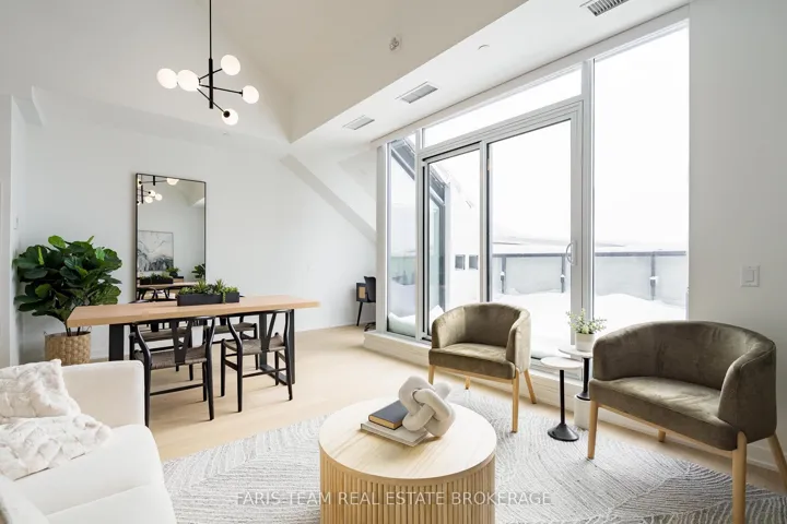 +"PublicRemarks": "Top 5 Reasons You Will Love This Condo: 1) Experience one of the final penthouse opportunities within this striking Streetcar Developments residence, thoughtfully designed for those who appreciate elevated design and a refined urban lifestyle 2) Spanning two beautifully planned levels, this 1,003 square foot suite is complemented by a private 100 square foot terrace, creating the perfect setting for morning coffee, evening cocktails, and quiet moments above the city 3) The open-concept main level is ideal for entertaining, while the loft primary retreat offers a true sense of escape, highlighted by a dramatic skylight and a spa-inspired ensuite featuring double sinks, a glass-enclosed shower, and a private water closet 4) Over $35,000 in carefully curated upgrades enhance every detail, including stone bathroom countertops, a waterfall-edge kitchen island, elegant tile selections, premium appliances, a gas line for grilling, and sleek roller blinds throughout 5) Complete with underground parking and a roughed-in EV charger included in the price, this penthouse seamlessly offers elevated design, everyday functionality, and prime city living. 1,003 fin.sq.ft."