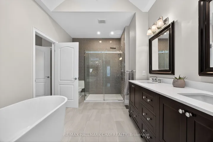+"PublicRemarks": "Pride Of Ownership! Executive, Quality Built Family Home With Over 3,900+ Sq Ft Of Available Living Space, Nestled In The Highly Desired Princeton Woods Community. Backing On To 518 Acres & 17Km Of Trails In The Protected Ardagh Bluffs. Fully Fenced Backyard Oasis Features Fibreglass Heated Inground Pool, Hot Tub, Patio, & Extensive Landscaping, Perfect To Enjoy On Warm Summer Days! Main Level Boasts Porcelain Tiles & Hardwood Flooring Throughout, 9Ft Ceilings, Extensive Crown Moulding & Upgraded Trim. Newly Redone Kitchen (2025) Features Quartz Counters, Porcelain Tiles, New Gas Stove & Range (2025), & Fridge (2020), Subway Tile Backsplash, Pot Lights, & Massive Skylight! Conveniently Combined With The Breakfast Area Which Has A Walk-Out To The Backyard Patio! Cozy Living Room With Wood Fireplace & Huge Windows Overlooking The Backyard. Plus Formal Dining Room, Perfect For Having Guests Over. Spacious Office With French Doors, Cathedral Ceilings, & Pot Lights, The Perfect Space For Working From Home, Or A Children's Area! Conveniently Located On The Main Floor, Primary Bedroom Features Unique Double-Sided Gas Fireplace, Large Closet, Walk-Out To The Backyard, & A Spa-Like 5 Piece Ensuite With Soaring Vaulted Ceilings, Skylight, Soaker Tub, Walk-In Shower, Double Sinks, & Quartz Counters! Upper Level Retreat Includes 2 Huge Bedrooms, Each With Crown Moulding, Closet Space & Cozy Broadloom Flooring, Plus Additional 3 Piece Bathroom With Porcelain Tiles (2022) & Beautiful View Of The Ravine, Perfect For Guests Or Family To Stay! Fully Finished Basement Has 9Ft Ceilings, Gas Fireplace In The Huge Rec Room With New Broadloom Flooring (2025) & Projector & Screen! 2 Additional Bedrooms In The Basement & 4 Piece Bath! Completely Turn-Key Family Home! Water Softener. Central Vac. Tandem 3 Car Garage With 9Ft Doors, Furnace (2024), Roof (2016). Nestled In Prime Location Minutes From Cumming Park, Groceries, Rec Centres, Top Schools, Shopping, Hwy 400."