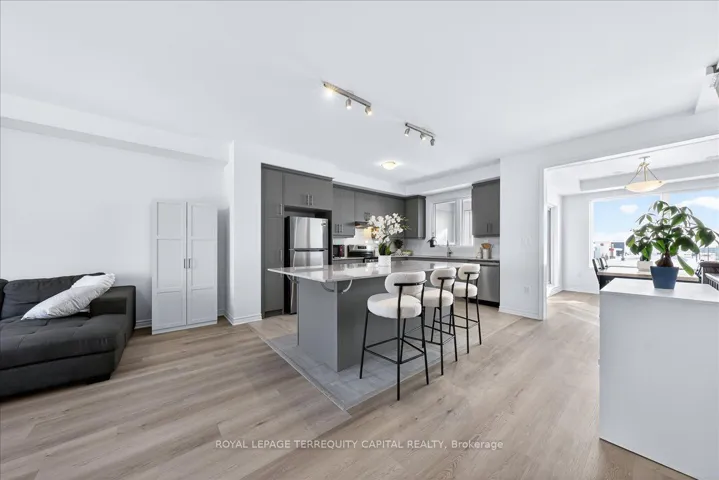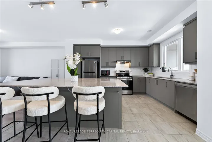 +"PublicRemarks": "Welcome to this brand-new Mattamy-built townhome in sought-after Southwest Barrie, bordering Innisfil with quick access to Highway 400 for easy GTA commuting. This modern home offers 4 bedrooms and 4 bathrooms, an open-concept layout with 9-foot ceilings on the first two levels, oversized windows, and quality finishes including SPC flooring, quartz countertops, and stainless steel appliances. The spacious kitchen features a large island with breakfast bar seating and opens to a covered deck, perfect for everyday living and entertaining. The primary suite includes a walk-in closet, ensuite, and private sundeck. Two additional upper-level bedrooms share a full bath with convenient second-floor laundry. The ground floor bedroom with ensuite, walk-in closet, and separate entrance is ideal for guests or an in-law suite, with potential for a separate unit. Additional features include an attached garage, private patio, owned mechanicals including a tankless water heater, and Tarion warranty. Located minutes from Mapleview Drive shopping, schools, parks, and amenities in a growing community with strong future value. Great location near highway 400, south of Barrie on border with Innisfil, easy to commute into GT"