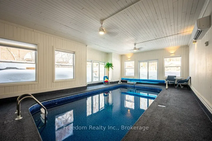 +"PublicRemarks": "Located in the historic section of Orillia's prestigious north ward, & 10 min walk to Lake Couchiching . This perfect 4 bedroom home allows for privacy, relaxation , & is suited to just about any lifestyle choice - including small to large families & even those that prefer to work from home . This bright replica of a Century Home was built in 1989 & has so many upgrades. It is set back on a private, beautifully landscaped 1/4 acre + property & has an expansive fenced-in backyard that encompasses a large rear deck & outdoor hot tub ( 2021 ) that is a natural extension from the various walkouts along the walls of the indoor pool & living room ! The luxurious kitchen , ideally set between the living & dining rooms, has newer quartz kitchen counters/backsplash ( 2024 ) & includes a large pantry . Plenty of thermal glazing surrounds the salt water indoor pool area & is children friendly with its 4 ft depth & is also great for getting those laps in - any time of the year ! The upgraded " salt based " pool ( new liner and pool heater 2025 ) comes with a newer dehumidifier, wall mounted heat pump , & protective rubberized coating on the walkway around the pool. The main floor laundry has a 2-piece bathroom, walkout to the side yard, and entrance doors to the pool area and garage. The 4 large children/ guest bedrooms on the 2nd floor offer plenty of closet space & include beautiful hardwood floors . There is one 5 pc & one 3 pc bathroom ideally positioned to service the four bedrooms ! The main bedroom contains hardwood floors, oversized walk-in closet , 5 pc ensuite , walkout to front deck, & its own heat pump ( primarily for AC use in summer). The large basement is presently being used as an entertainment area with good size windows. The custom garage door ( 2024 ) allows for a larger truck & the cement driveway was upgraded in ( 2019). Don't forget - the durable metal roof will protect your investment for many years to come !"