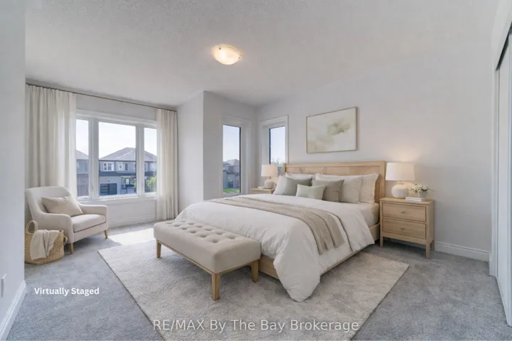 +"PublicRemarks": "Move-in-ready, never-lived-in end-unit freehold townhome by Baycliffe Communities in the highly sought-after Wasaga Sands community. This Coral model offers 1,876 sq ft of well-appointed living space with a functional, modern layout. The main floor features a versatile front room suitable for dining, a home office, or sitting area, an open-concept living space with hardwood flooring, and a kitchen with extended cabinetry, island with double sink, black countertops, and breakfast area. 9-foot ceilings on the main level enhance light and openness. Upstairs includes a spacious primary bedroom with walk-in closet and 5-piece ensuite featuring a freestanding soaker tub and double vanity, two additional bedrooms, a full bath, and convenient second-floor laundry. The unfinished basement includes a bathroom rough-in, offering excellent future flexibility. Ideally located minutes from schools, trails, shopping, and the world's longest freshwater beach, with easy access to Collingwood and Blue Mountain. Tarion warranty included."