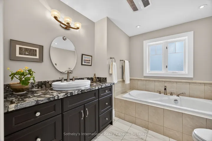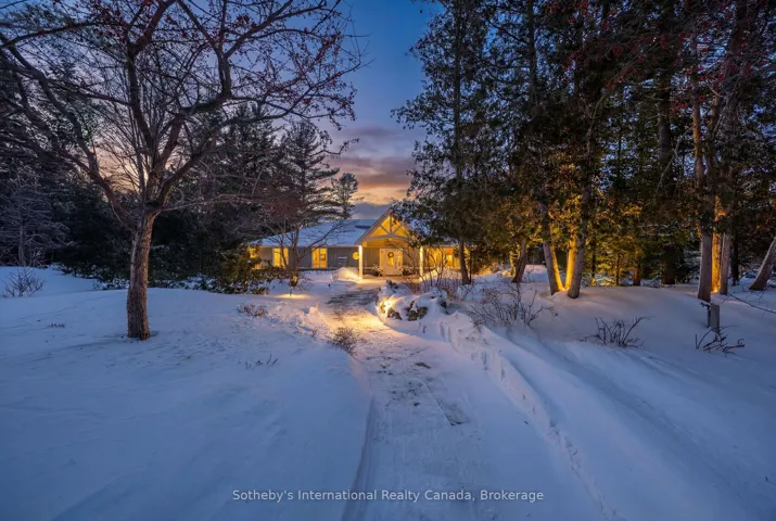 +"PublicRemarks": "Set along the iconic sandy shoreline of Wasaga Beach with immediate beach access, enhanced by the privacy of a quiet sandy road, this custom bungalow offers a rare blend of refined craftsmanship and natural beauty with panoramic views across Georgian Bay to Blue Mountain. Spectacular sunsets paint the sky creating breathtaking scenes in every season. Professionally landscaped grounds span over 1/2 an acre and are framed by mature trees, impressive limestone boulders and meandering walkways through perennial gardens creating a sanctuary that feels natural but refined. This one-floor residence of over 2,800 square feet is thoughtfully designed for effortless living and entertaining. Throughout the home, sunlight streams through oversized casement windows. The open-concept living and dining areas, enhanced by walnut flooring and a vaulted ceiling, are anchored by a striking dual-aspect marble-clad gas fireplace. The expansive gourmet kitchen features granite countertops, an oversized double sink, full-height cabinetry with under-cabinet lighting, a generous pantry and premium appliances including a Blue Star six-burner gas range and Miele fridge/freezer. The two-tiered prep/entertainment island provides seating for five or more. The primary suite is a private retreat that features bay views, access to a secluded deck, a walk-in closet with window, a spa-inspired ensuite with heated floors, granite counters and an oversized marble-tiled shower with granite bench, rainfall showerhead and body jets. Three additional large bedrooms and two three-piece bathrooms provide comfort for family or guests. Outdoor living is enhanced by an expansive lounging and dining deck offering breathtaking lake and stunning sunset vistas. An oversized detached two-car garage and large driveway provide ample parking. This beautiful and unique home ensures tranquil and pleasurable living immersed in the beauty of each season."