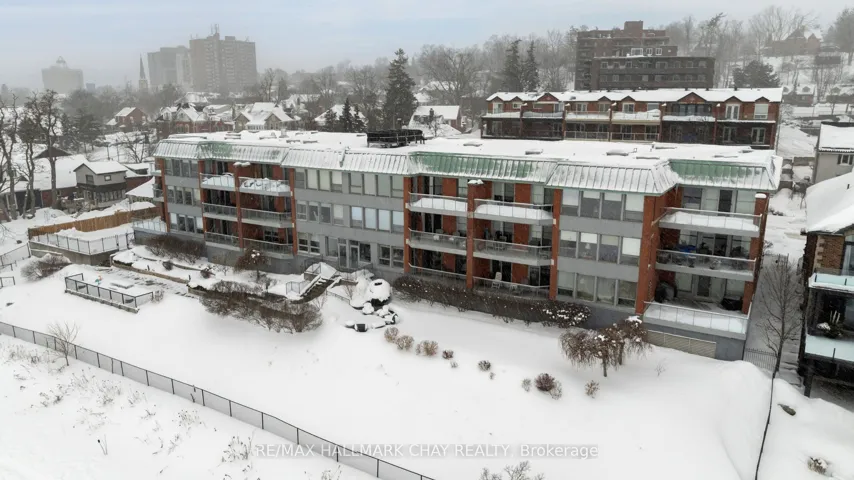 +"PublicRemarks": "Welcome to Portage Place at 21 Kempenfelt Drive, a rarely available and highly sought-after condominium building located directly on the shores of Kempenfelt Bay. Opportunities to own at this waterfront address are few, making this an exceptional offering for those seeking space, views, and an unbeatable location. Suite 103 offers a generous 1,190sf layout featuring one bedroom, a large den, a full 4-piece bathroom, and a convenient 2-piece powder room. The suite features a functional kitchen and expansive living and dining areas, all flooded with sunrise-to-sunset natural light from south-facing picture windows that frame the shimmering waters of Kempenfelt Bay. Access your private balcony from the living room, den, or bedroom, and enjoy the ideal setting for morning coffee, relaxed evenings, or entertaining.Residents enjoy well-maintained common spaces, including a community room and multiple outdoor terraces designed for socializing, reading, or simply enjoying the waterfront surroundings. Positioned just steps from Barrie's waterfront and a short walk to downtown shops, dining, services, and year-round events, this location offers outstanding walkability and lifestyle convenience. Easy highway access allows for seamless travel north to Cottage Country or south to the GTA. Two underground parking spaces and two storage lockers complete this exceptional offering. A rare opportunity to own in one of Barrie's most desirable waterfront buildings, right on Kempenfelt Bay."