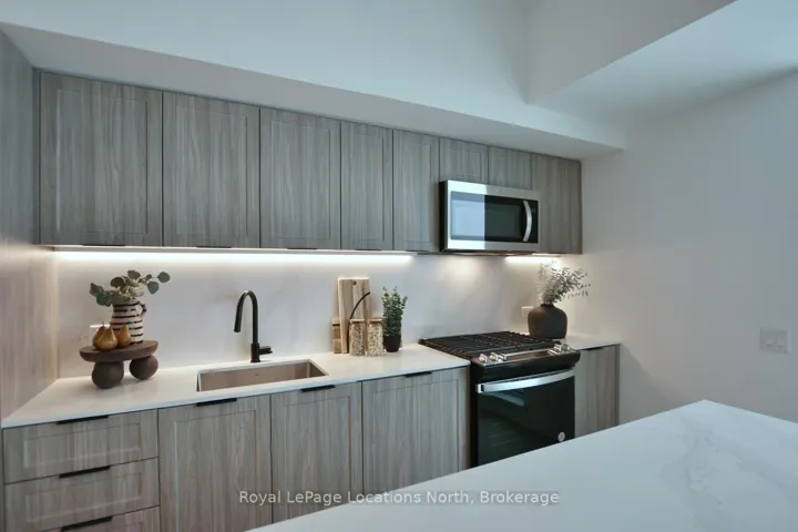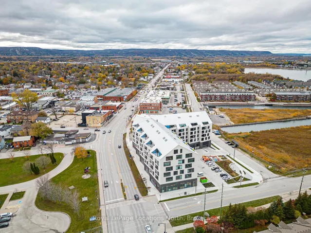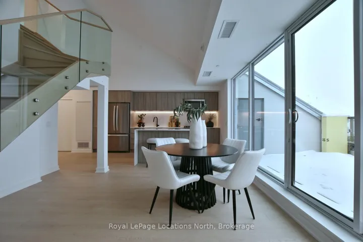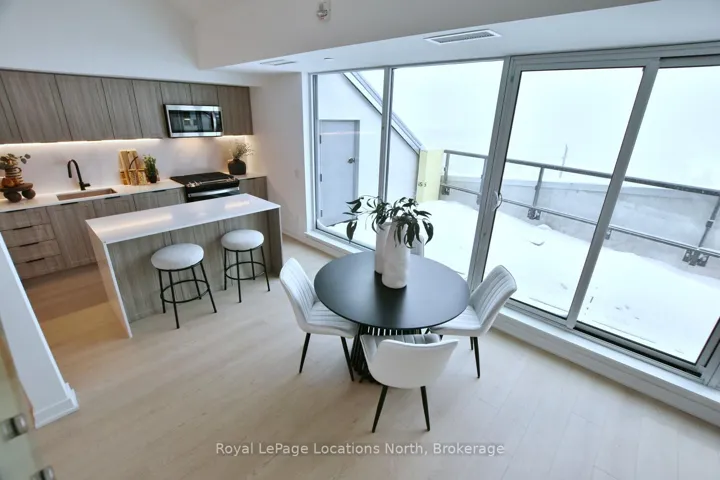 +"PublicRemarks": "Penthouse Waterfront Living in Downtown Collingwood! Welcome to refined urban living in the heart of Collingwood! This stunning penthouse residence in this new boutique building offers a perfect blend of modern design, luxury finishes, & a vibrant downtown lifestyle. Spread over 2 uniquely designed levels, this 1050 sqft suite features an additional 150 sqft private terrace where you can take in sweeping views of Georgian Bay & the charming Collingwood skyline. The open-concept main level is bright airy, w/ oversized windows that fill the space w/ natural light. The contemporary kitchen showcases high-end finishes, sleek cabinetry, & an island ideal for entertaining. The adjoining living dining area flows seamlessly to the terrace, perfect for enjoying morning coffee or evening sunsets over the bay. Upstairs, 2 spacious beds each feature their own bath, creating the ultimate in comfort & privacy. A stylish powder room on the main level adds convenience for guests. Every detail has been thoughtfully curated for a sophisticated, low-maintenance lifestyle that perfectly compliments the areas 4-season appeal. Enjoy exclusive building amenities including a well-equipped gym, social lounge, elegant guest suites, pet spa + a rooftop terrace with views. Secure underground parking adds peace of mind, while the building's design emphasizes modern architecture, energy efficiency, & comfort. Step outside to experience the best in dining, shopping, galleries, waterfront trails, & the marina- all just steps away. With its unbeatable central location, you can leave the car at home truly embrace a walkable downtown lifestyle. Whether you're seeking a full-time home, weekend retreat, or investment in one of Ontario's most desirable destinations, this penthouse offers a rare opportunity to live at the intersection of luxury, design & convenience. Experience the perfect balance of urban sophistication & natural beauty- welcome home to Collingwood's newest address of distinction!"