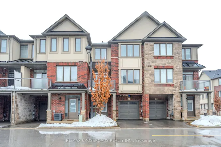 +"PublicRemarks": "Welcome to this bright and beautifully maintained townhome in the highly desirable Ancaster Glen community. Featuring 9-ft ceilings main & second floor and a thoughtfully upgraded layout, this home offers both style and function. The spacious foyer welcomes you with convenient garage access and a 2-piece powder room. Head upstairs to the open-concept main living area where luxury hardwood floors, oversized bay windows, and abundant natural light create an inviting space perfect for everyday living and entertaining. Step out onto your private balcony - ideal for morning coffee or evening unwinding. The modern kitchen showcases two-tone countertops, a large breakfast bar overlooking the living and dining areas, and a generous pantry for convenient storage. Upstairs, the spacious primary bedroom features a charming bay window, large walk-in closet, and plenty of room to create your own retreat. Visitor parking is conveniently located directly in front of the unit, with additional parking nearby for guests. This bright, well-situated home is just minutes to schools, parks, shopping, public transit, and offers quick access to Hwy 403 - perfect for commuters."