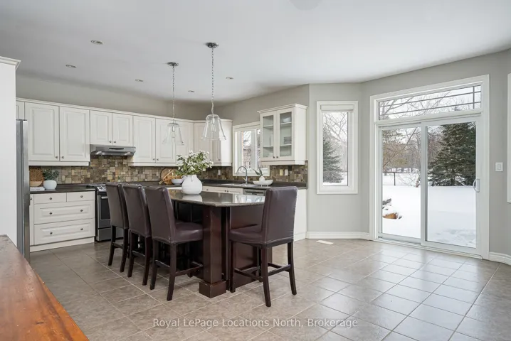 +"PublicRemarks": "Welcome to one of Mair Mills' most exceptional offerings, where refined executive class living meets an excellent setting. Ideally located between the Blue Mountains and downtown Collingwood, this executive all-brick home sits on a rare, south-facing 1/2 acre lot backing directly onto the Blue Mountain Golf & Country Club. This property delivers sun-filled views, privacy, and a sense of calm that is increasingly hard to find. Tucked away on a quiet no-thru street in a neighbourhood celebrated for its safety, green spaces, playgrounds, and tennis courts, this is a location families actively seek out and seldom leave. Offering over 4,000 sq ft of finished living space, this 5-bedroom, 5-bathroom residence showcases quality craftsmanship and timeless finishes throughout. The main living area is anchored by a stunning great room and chef's kitchen featuring custom built-ins, solid wood cabinetry, stainless steel appliances, a 10-foot quartz island, butler's pantry, and formal dining room-perfectly designed for both entertaining and everyday luxury. Unwind by the fireplace while enjoying sweeping south-facing golf course views. The primary suite is a true retreat with a spa-inspired ensuite including a soaker tub, separate shower, luxury finishes, and an oversized walk-in closet. The fully finished lower level adds versatility with a dedicated theatre room, spacious recreation area with electric fireplace, and a private bedroom with ensuite, ideal for guests or extended family. One of the largest and most private lots in Mair Mills, the backyard offers endless potential for a custom outdoor oasis. Minutes to skiing, golf, Georgian Bay, trails, and Collingwood's shops and dining, this home delivers an unmatched four-season lifestyle in a setting that rarely becomes available."