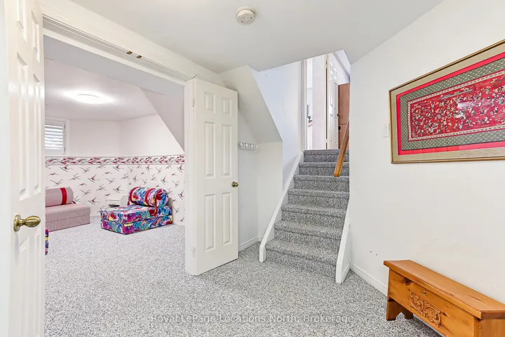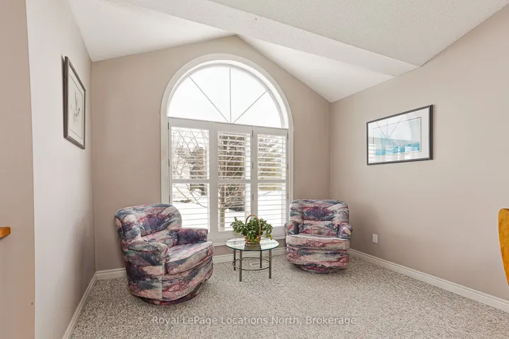 +"PublicRemarks": "Enjoy carefree living from this spacious beautifully maintained 'one owner" open concept home. Quietly located backing onto the 7th fairway of Cranberry Golf course in the west end of Collingwood. 3 bedrooms, 3 bathroom, 2 storey split level. Welcoming views & natural sunlight flows though the many large windows that are enhanced w/ California shutters throughout, vaulted ceilings & architectural display details invite warmth to this home. Double front door entry into foyer, generous formal dining/living room & large open kitchen w/ walk out to deck. Over look the family room w/ gas fireplace & sliding door walk out to ground level patio. Upper storey has 2 generous sized bedrooms, each w/ ensuites, & large walk in closets. Main level bedroom, also doubles as perfect office, separate 3 piece washroom & inside entry to double garage w/ epoxy finished floor. Lower level basement is partially finished, great area for extra guest sleep options & kids play area, laundry/utility room, plenty of storage area."