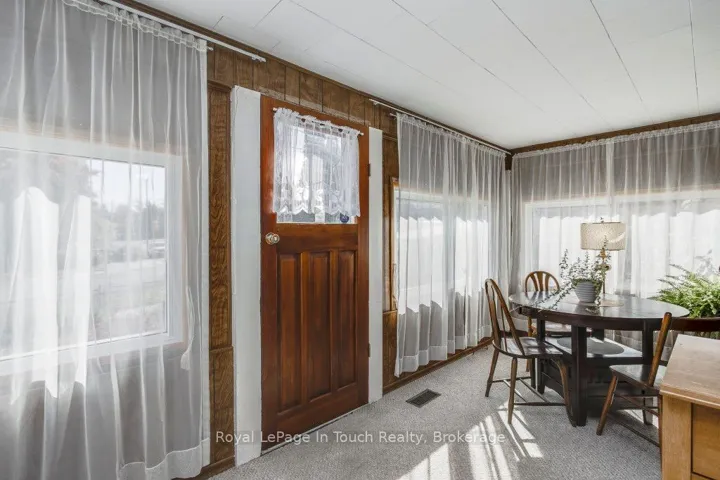 +"PublicRemarks": "Downsizing but still need space to roam? This home is a gem set on over a private half acre with a detached double garage with hydro that offers added workshop, hobby space, man cave or storage. This home offers 1300 sq ft finished space with a warm welcoming atmosphere, full of charm, character and comfort all on one level. This unique home offers original coffered ceilings and strip hardwood flooring and solid 5 panel wood doors and quality trim from a by-gone era. A functional kitchen, cozy bright and spacious living room and separate dining area flows comfortably, convenient laundry area with newer appliances, newer bathroom and a convenient 2nd bath. Soak up the sunshine in the sunroom with natural light or have your morning coffee on the updated deck - a perfect spot to unwind after a busy day. Room to roam in a fully fenced massive private yard with gardens and mature shade trees is a retreat for children, pets, gardening and entertaining family & friends with bonfires on quiet evenings under the stars. This move-in ready property is perfect for first-time home buyers, downsizers or just looking to simplify without sacrificing comfort and space in a quiet family friendly neighbourhood. On municipal services with additional features - newer furnace, newer water heater, newer roof, newer sump pump, central air, garden shed, 2nd drive with gate. Delight in the small town community charm. So much to do with easy access to atving, boating, fishing, swimming, hiking, cycling, snowmobiling, golfing, skiing. Just minutes to the beautiful shores of Georgian Bay beaches, marinas, trails, parks and walking distance to Tay's outdoor rink, park, baseball field, community center and library & local amenities. A short drive to Midland, Orillia and Barrie. Offers endless possibilities for builders, renovators, investor! Don't miss your chance to make this charming and affordable home your own and get into the market. Call today to arrange your own private viewing!"