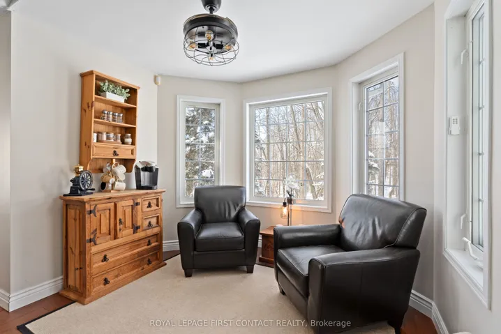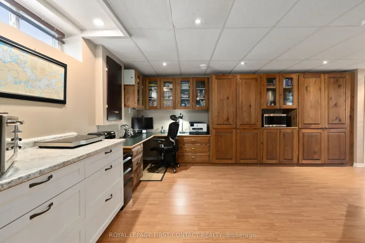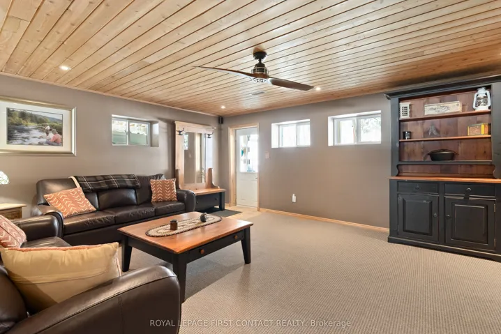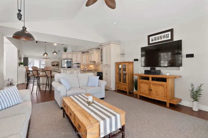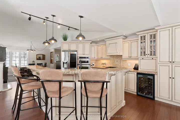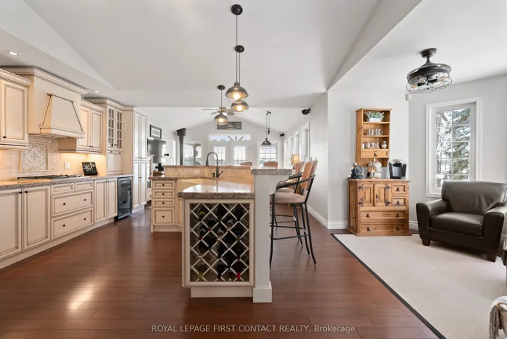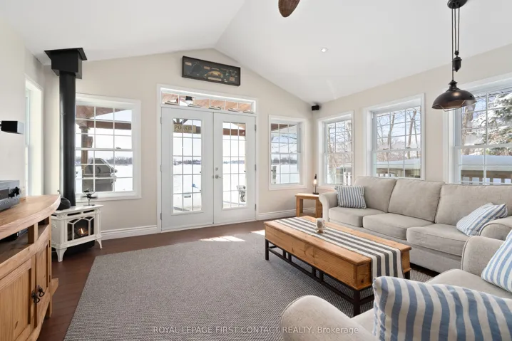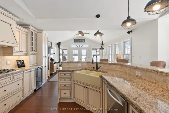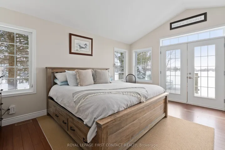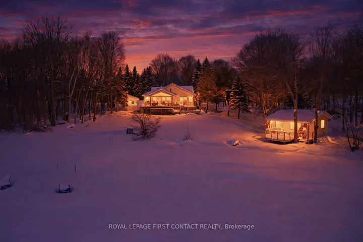 +"PublicRemarks": "A home that feels like a getaway, with the water at your doorstep. Set on a beautiful point on Little Lake, this custom-built, year-round waterfront home offers a quiet setting, southwest exposure and unforgettable sunsets Set on a level 0.81 acres with 218 ft of private shoreline, offers direct access to the Trent-Severn Waterway, connecting Gloucester Pool to Georgian Bay opening the door to endless boating, fishing, and cruising. Enjoy 3,500 sqft with 4 bdrms, 3 baths, a gourmet kitchen and a lower-level kitchenette, along with two laundry areas, providing excellent flexibility for family living, entertaining, or extended-stay guests or multi-generational living. The main level is designed to maximize lake views and everyday comfort, offering an inviting open-concept layout flooded with natural light from oversized windows throughout. The living space flows seamlessly between cozy gathering areas with fireplaces, a sitting room, and a dedicated dining area - ideal for both entertaining and relaxed evenings by the fire. Anchoring the level is a custom gourmet kitchen, recently renovated and appointed with granite countertops, premium appliances, and abundant cabinetry. A serene primary suite with ensuite. Multiple walk outs extend the living space to a wrap-around covered porch, providing shaded outdoor enjoyment and exceptional waterfront views. The fully finished lower level is exceptionally well laid out, featuring a roomy kitchenette with dining area, a large recreation and family room, dedicated office space, generous bedrooms, a full walk-up separate entrance. Outdoors, enjoy a private dock, a peaceful bunkie with its own deck for additional sleeping space, and a spacious triple heat garage ideal for vehicles, workshop , or seasonal storage. Conveniently located minutes to marinas, LCBO, general store, Rawley Resort and Inn at Christie's Mill, with nearby skiing and golf & snowmobiling . Approx 35 minutes to Barrie with easy access to Highway 400."