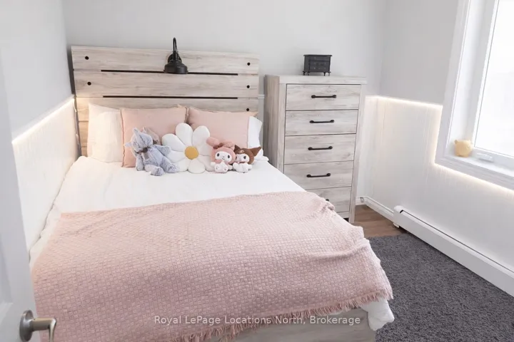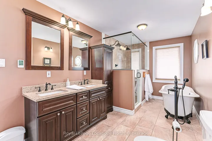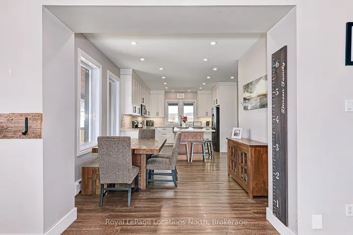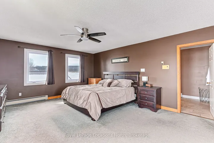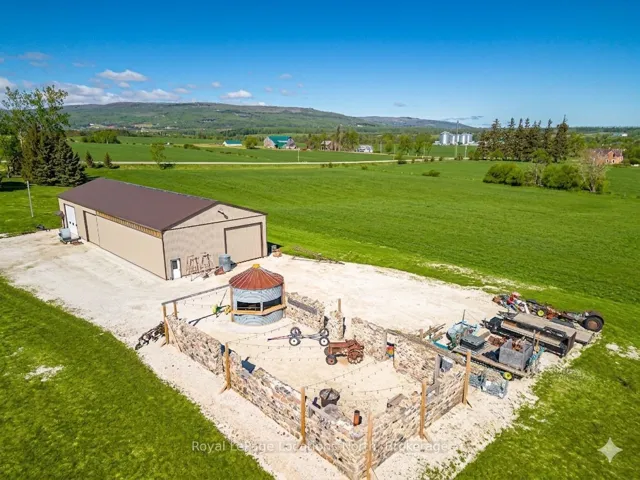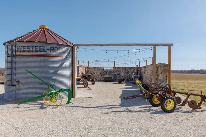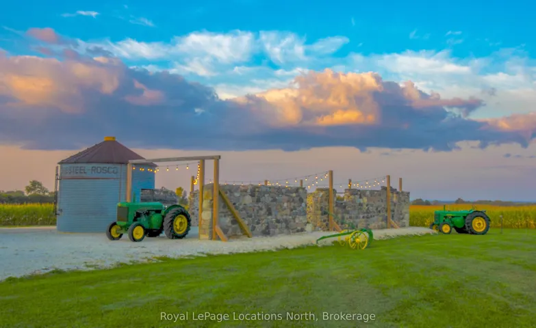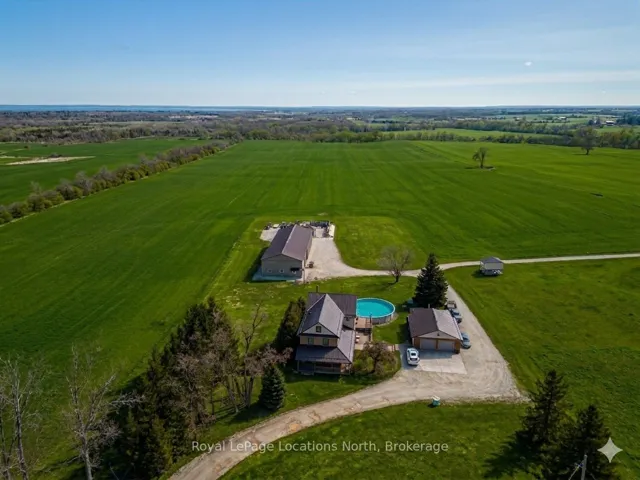 +"PublicRemarks": "Discover the charm of country living with this 4 Bedroom, 3.5 bath, 3.5 storey renovated farmhouse with 3000 square feet of stylish open concept living space. Nestled on 2.68 acres this property offers a blend of modern comforts and rustic appeal. Walk-out from the living room to a large deck and patio area and soak in views of the Bay and refreshing pool. The gorgeous Batteaux Creek custom kitchen (2021) features a huge island with a quartz countertop, ideal for family gatherings or entertaining! Experience the ultimate retreat in the massive primary bedroom, complete with a 6 piece ensuite bath (2016) and walk-in closet. Step out onto the private balcony and take in the breathtaking views of Georgian Bay! The finished bonus room in the attic is perfect for a kid's playroom, music or art studio. The freshly painted family room on the lower level features a cozy wood stove and includes a walk-out to the expansive rear yard. Full bath and sauna complete the lower living space. The 7 foot high unfinished basement area is ideal for storage. Enjoy a morning coffee on the charming wrap around veranda. Steel roof on house and garage, windows and exterior doors all replaced in 2018. The 26 x 26 detached, double car garage has an attached 14 x 23 propane-heated workshop area. The quality built 2018, 40 x 112 outbuilding consists of a 32 x 40 shop with a 16 foot ceiling and is roughed-in for in-floor heating. 14 x 16 foot insulated overhead and slider doors. Impressive 40 x 80 cold storage area complete with a storage mezzanine. Primary underground service, 50kva transformer, 200 amp service to the shop area and central metering. From hobbies to business ventures, the uses for this building are endless! The original barn foundation is transformed into an outdoor party area complete with a silo converted bar! This is a very unique and special property located just minutes to Collingwood, Blue Mountain, private ski clubs and golf courses with a stunning million dollar view!"