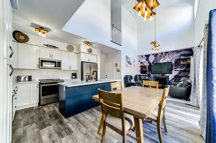 +"PublicRemarks": "Welcome to Sophie's Landing, a sought-after gated waterfront community on Lake Simcoe in Orillia. This upgraded end-unit townhouse features 3 bedrooms, 2 full bathrooms, and a bright open-concept layout with soaring 18 ft ceilings in the living/dining area. Main floor bedroom with 4-pc bath offers flexibility for guests or multi-generational living. Modern kitchen with quartz counters, stainless steel appliances, and large island. Stylish vinyl cork flooring throughout. Private fenced backyard with no right-of-way easement, unlike interior units. Community amenities include lake access with private boat slips, dock, shoreline, and a new two story clubhouse with elevator, gym, shower, party room, patio, BBQ and outdoor pool. Steps to trails, parks, and Mara Provincial Park. Minutes to Casino Rama, downtown Orillia, shopping, and dining. Rare opportunity to own in this growing community."