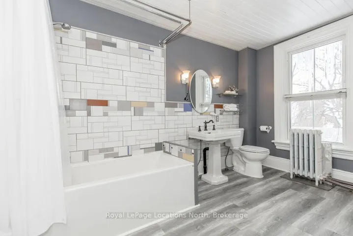 +"PublicRemarks": "Welcome to 29 Tecumseth Street in Orillia, a distinctive 2 1/2-storey century home where history meets modern updates. Originally built in 1900 just across the street and carefully relocated to its present setting in 1911, this 5-bedroom, 4-bathroom residence blends classic charm with thoughtful improvements. With minimal changes, it could easily be converted back to a 6-bedroom home. Step inside through the welcoming side foyer and you're immediately greeted by warmth and character. The main hallway features the classic original staircase, a timeless focal point.The spacious living room offers a bay window, built-ins, and a marble fireplace surround, while the large formal dining room features a plate rail and electric fireplace, ideal for hosting family gatherings and celebrations. The oversized powder room adds convenience, and the kitchen includes updated appliances, original baker's table and cabinetry, and access to the butler's staircase. A bright 3-season room provides access to the backyard and a separate basement entrance. Upstairs, the second level offers two separate wings encompassing four bedrooms,including a primary suite with a walk-in dressing room thoughtfully converted from a former bedroom. A 4-piece main bath with tiled shower and convenient laundry closet, along with an additional 2-piece bath, complete the level. The third floor features a fifth bedroom with its own ensuite and classic clawfoot tub, plus attic storage. The full unfinished basement offers a rec room area, additional laundry hookups, abundant storage, and a walk-up to the sunroom. Featuring many original architectural details alongside modern mechanical updates, including a boiler (2022) and hot water heater (2026), this home offers the perfect balance of character and functionality. A rare opportunity to own a piece of Orillia's history, without heritage designation restrictions, providing the flexibility to make this remarkable property truly your own."