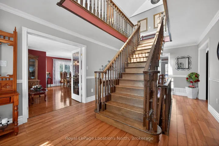 +"PublicRemarks": "Welcome to your own private retreat on 2.81 beautifully landscaped acres in the prestigious Simcoe Estates of Oro-Medonte. Nestled against a tranquil forest backdrop, this immaculate executive home offers 4+1 bedrooms and a professionally finished walkout basement-perfect for extended family or in-law living.Pride of ownership shines throughout. The property features award-winning landscaping, mature trees, and vibrant gardens that create a truly breathtaking setting. Tucked away on a quiet private court in one of the area's most desirable neighbourhoods, this home offers exceptional privacy and a peaceful, natural environment.Car enthusiasts and hobbyists will love the oversized 3-car garage, spanning more than 800 sq. ft. and accommodating up to four vehicles with ease. The expansive paved driveway provides plenty of additional parking for guests. Recent exterior upgrades-including newer Timberline high-definition shingles, eavestroughs with leaf guards, and enhanced exterior lighting-add both beauty and long-term confidence.Inside, the home is finished with quality in mind. A grand traditional Oak staircase, granite countertops, upgraded baseboards, and vintage oak hardwood flooring elevate the living spaces. Major mechanical updates-such as a two-stage high-efficiency furnace, ultraviolet water filtration, two new holding tanks, and fibre-optic internet-ensure modern comfort and reliability.The charming covered wraparound porch is a standout feature, offering a warm welcome and the perfect spot to unwind while enjoying the lush gardens and surrounding nature.Ideally located close to skiing, golfing, fishing, shopping, restaurants, Royal Victoria Hospital, and the amenities of Barrie, this property blends luxury living with everyday convenience.A quick closing is available-your dream lifestyle is ready when you are."