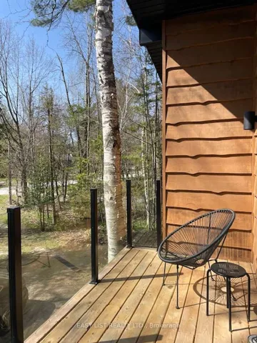 +"PublicRemarks": "For more info on this property, please click the Brochure button. Welcome to this mid-century modern four-season home, just a short walk from the sandy shores of Wasaga Beach. Nestled on a quiet cul-de-sac and surrounded by mature trees, this 90' x 187' lot offers a peaceful and private setting with easy access to forest trails, biking paths, and outdoor recreation. This property is ideal for those seeking a full-time residence, a tranquil weekend retreat, or a high-end investment opportunity. This fully renovated property blends original charm with thoughtful upgrades. The interior features preserved 1970s cedar ceilings (15ft high), natural materials, and clean architectural lines. Slab on grade construction. No basement. Main Level: Entry, Office, 1 bdrm, 1 full bath with steam shower, and family room with F/P, bar/sink. Second Level: Kitchen/Dining, Living room with F/P, 2 bdrms, 1 full bath/tub and laundry. Large windows offering calming views of the trees and natural surroundings. Recent upgrades include a new steel roof (2021), 80,000 BTU gas furnace (2025), central A/C (2022), updated plumbing, and full electrical rewire with new panel (2022). Kitchen and dining area feature custom cabinetry, quartz countertops and new appliances incl. Bosch extra quiet dishwasher. Private, fully treed half-acre lot includes a firepit, natural landscaping, and offers a 5 minute walk to the beach via quiet, private pathways. Designed with inspiration from Japanese minimalism and Scandinavian warmth, the home offers calm, curated spaces throughout, making it a rare opportunity in one of Wasaga Beach's most desirable locations."