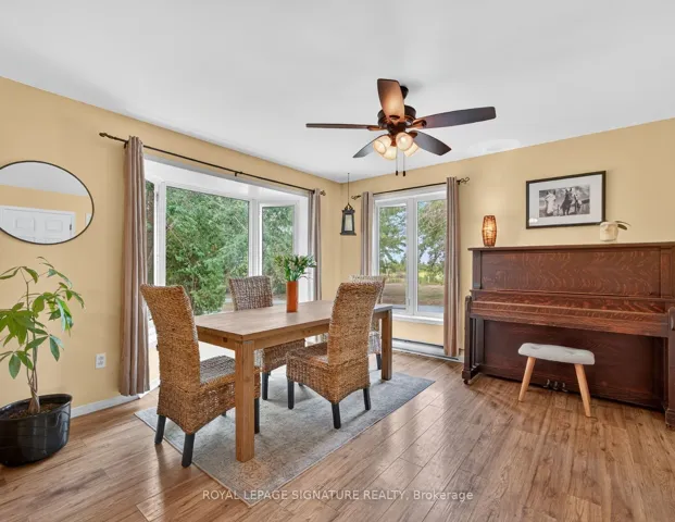 +"PublicRemarks": "**Escape to Your Private Country Retreat! Embrace unlimited potential on 100 sq acres in Brechin, ideal for equestrian, tree, cattle, crop, hobby farming, eco-tourism + more. This charming 1,524 sf Royal Home bungalow, built in 1991, features a spacious open-concept gourmet kitchen with new appliances and a generous dining area overlooking beautifully landscaped gardens perfect for entertaining. The front foyer with a double closet and a convenient 2-piece powder room, ideal for farm life. Unwind in the living room by the stunning stone wood-burning fireplace, creating a cozy atmosphere. The main floor also includes three spacious bedrooms, each with closets and hardwood flooring. The private primary bedroom features a modern electric fireplace and 3 large windows showcasing the breathtaking farmland. The expansive 4-piece bathroom boasts a luxurious step-in shower, a custom stone vessel sink on a butcher block countertop, and a classic clawfoot tub. The basement, filled with natural light from above-grade windows, offers vast potential for work and recreation, including a finished office/bedroom with an electric fireplace. Step outside to enjoy the great outdoors! The oversized, insulated, heated two-car garage with 100 AMP 4 breaker pony panel, perfect for all your tools and equipment. Equestrian enthusiasts will love the two paddocks, run in shed and round pen, while trails weave through the property for sustainable farming, trail rides, and hiking. A self-contained insulated cabin with a covered porch features a newly installed with high-efficiency wood stove, nestled beside the original farm silo and an operational hand pump well. This cabin allows for future expansion plans, as it can serve as a second dwelling. Benefit from the MFTIP (Managed Forest Tax Incentive Program) for property tax savings. This property is a dream for those seeking a rural oasis close to Lake Simcoe and the Trent Severn without sacrificing city proximity to the GTA."
