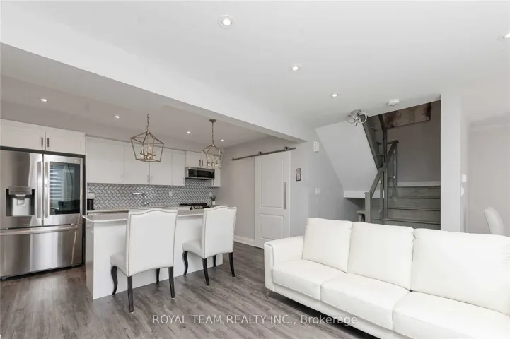 +"PublicRemarks": "Stunning End-Unit 3-Storey Townhome Offering Exceptional Natural Light And A Bright, Spacious Layout Throughout! This Beautifully Upgraded 3+1 Bedroom, 3 Bathroom Home Features High-Grade Plank Flooring, Pot Lights, Upgraded Interior Fixtures, Modern Zebra Blinds, And An Elegant Electric Fireplace In The Family Room. Thoughtfully Designed With Functionality In Mind, The Home Offers A Versatile Layout Ideal For Families Or Professionals Alike. Enjoy Direct Garage Access To The Main Level For Added Convenience, Full-Size Laundry, And Quality Appliances. Walk Out To A Large Private Balcony - Perfect For Relaxing Or Entertaining. Located Just Minutes To Highway 400, Schools, Parks, Shopping, And Everyday Amenities. A True Turn-Key Opportunity You Don't Want To Miss!"