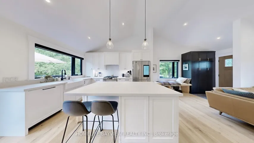 +"PublicRemarks": "Welcome to this stunning, open concept, 2 bedroom, 3 bathroom bungalow nestled on a private ravine lot. With direct access to nearby hiking trails and surrounded by mature trees, this home offers a rare combination of tranquility and modern living. The main floor features vaulted ceilings, elegant white oak hardwood, custom cabinetry throughout and pot lights that create a bright, welcoming atmosphere. The thoughtfully designed kitchen opens onto a spacious deck with stairs that lead down to large back yard. This gem has been fully renovated, electrical, plumbing, roof, siding, windows, doors, new appliances (all done 2023) The home is generator ready with natural gas hook up. There is a natural gas hook up for your BBQ perfect for entertaining. A finished basement provides additional living space with endless possibilities such as a home office, media room or playroom. Smart outdoor security cameras add peace of mind. With 2 driveways and plenty of parking, this property is as functional as it is beautiful. Enjoy great tasting water throughout the house with a comprehensive, low-maintenance water system that includes a saltless water softener, UV light purification and sediment and carbon filters. Water testing done in June 2025, results available upon request. Buyer and buyer agent to verify all measurements and taxes."