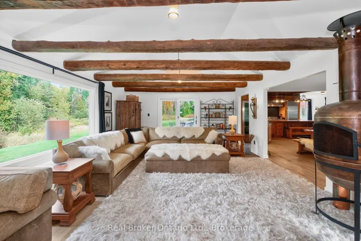 +"PublicRemarks": ""The Winding Rivers Estate" has it all, privacy, location and acreage. This one of a kind state of the art Contemporary Home is a lifestyle retreat sitting on nearly 100 acres, this extraordinary property offers the perfect blend of peaceful living, recreational opportunities, and income potential. The land features open, treed and cleared productive farmland, and is surrounded by managed forest. A gated private drive crosses a bridge over Matheson Creek, winds past a spring-fed pond, and leads to over 3000 sq ft of luxury living space bordering Willow Creek. Sunlight pours into every inch of the home through the expansive windows and doors designed to frame the fabulous outdoor views. The amazing chef's kitchen comes complete with Sub Zero/Wolf and Viking stainless steel high end appliances a huge island and rustic high end finishes. The radiant in-floor heating, rustic wood beams, multiple fireplaces and custom touches throughout blend style with timeless looks. The 36x48 ft. two level hip-roof barn with space for 7 large stalls, has a free-span loft, concrete floor, hydro and water. The paddocks, run-in shed, and riding ring invites possibilities from equestrian pursuits to creative projects. Explore the large network of private trails weaving through the creeks and streams throughout the entire property; ideal for ATV or horseback riding, hiking or cross country skiing. A 24x60 ft greenhouse makes it easy for the avid gardener to spend hours cultivating their own indoor gardens. The gardens, wood and pump houses, plus wood and propane boilers, offer self-sufficiency in this agricultural zoned estate with a rare blend of natural beauty, long-term value, and exceptional privacy. Whether you're seeking a family retreat, hobby farm or simply space to breathe this is a property that delivers. Just 10 mins to Barrie, 15 to Horseshoe Valley and Vetta spa, golfing, skiing, and major highways, just imagine the endless possibilities that await in this remarkable estate."