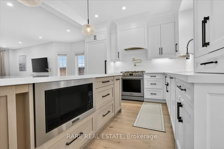 +"PublicRemarks": "Fully renovated two-storey home in one of Midhurst's most desirable, family-oriented neighbourhoods. Situated on a quiet corner lot with mature trees and minimal neighbouring properties, offering over 3,000 sq ft of finished living space, excellent privacy, and strong curb appeal. Just steps to Forest Hill Public School and within a highly sought-after school zone.The interior features 9-foot ceilings, a coffered ceiling in the dining area, updated flooring throughout, and a bright, functional layout. The modernized, upgraded kitchen is ideal for everyday living and entertaining, featuring many elevated finishes, including high-end built-in appliances, full-height quartz backsplash, pot filler, and coffee bar area. A fully finished basement with a wet bar provides additional living and recreational space. The second level offers four generously sized bedrooms, ideal for families or home office needs.The primary bedroom features a walk-in closet with built-in storage and a private ensuite with double vanity sinks.The private backyard is framed by mature trees and enhanced by the corner-lot setting. Outdoor features include an soffit pot lights, irrigation system, gas barbecue hookup, and a rough-in for a future hot tub. Recent upgrades include a brand-new furnace and air conditioning system (2025) and a water softener (2026), providing comfort and energy efficiency.Conveniently located near Georgian Mall, Highway 400, and a wide range of local amenities. Outdoor enthusiasts will enjoy nearby Springwater Sports Complex and surrounding hiking trails. A true turnkey property in a premium Midhurst location."
