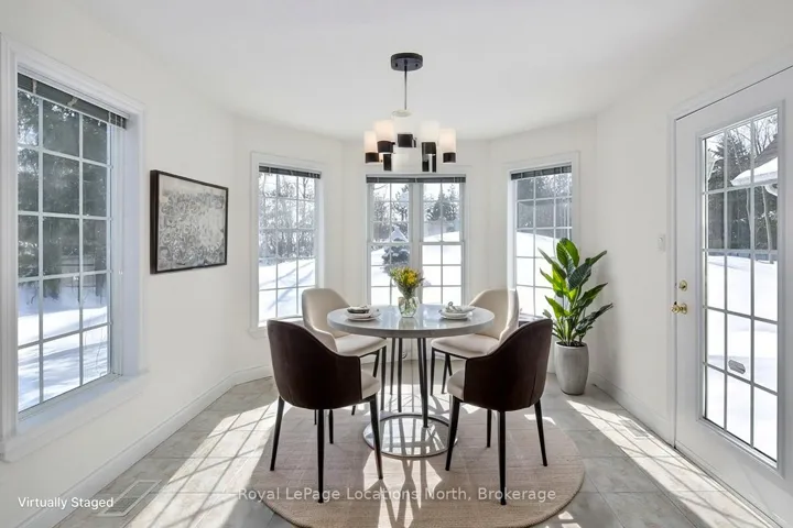 +"PublicRemarks": "Set on one of Collingwood's most highly desirable streets, where homes are rarely offered for sale, this lovingly maintained custom bungalow is a true gem. Built and cherished by the same couple since day one, pride of ownership is evident throughout. Positioned on a stunning, treed lot over 220 feet deep, the property offers exceptional privacy and a coveted south-west exposure, filling the backyard with beautiful afternoon sun. Directly across the street, enjoy access to the pristine waters of Georgian Bay; your morning swim is closer than you think. Designed with comfortable, one-level living in mind, this sprawling bungalow features high ceilings, spacious principal rooms, and an easy, flowing layout ideal for aging in place. The great room is the heart of the home, showcasing cathedral ceilings, a cozy gas fireplace, and views toward Georgian Bay. The kitchen offers ample storage and views over the private backyard. An eat-in dining area connects seamlessly to a spectacular sunroom wrapped in walls of windows. A convenient two-piece powder room is ideal for guests. The spacious primary suite is thoughtfully positioned at the back of the home; featuring double doors to the backyard, a walk-in closet, and a large five-piece ensuite. Two additional bedrooms offer flexibility for family, guests, or a home office, and share a well-appointed four-piece bath. Practicality meets convenience with a dedicated laundry room complete with sink and storage, plus direct access to the attached two-car garage. Georgian Manor Drive is known for its welcoming community feel, where neighbours stroll and take in Georgian Bay as a breathtaking backdrop. From skiing and water sports to cycling the Georgian Trail, golfing year-round, and enjoying the shops and restaurants throughout the Collingwood area, the four-season lifestyle here is second to none. This is more than a home; it's a setting, a community, and a lifestyle. A property truly worth moving for."