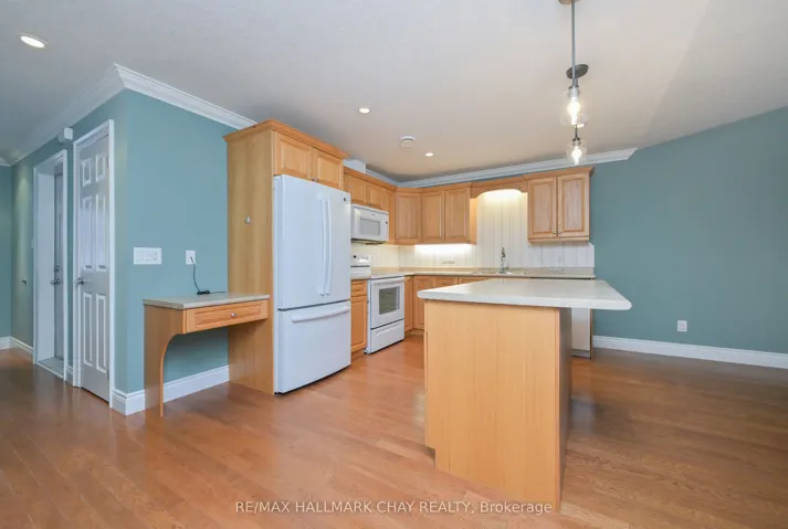 +"PublicRemarks": "Welcome to this beautifully finished 2-bedroom, 2-bathroom bungalow located in the highly sought-after Wasaga Lifestyle Community (Adult 55+). Designed for comfortable, low-maintenance living, this home features a bright open-concept main floor with elegant hardwood flooring throughout, a spacious family-sized kitchen with breakfast bar, and a combined living and dining area complete with vaulted ceilings, pot lights, a cozy gas fireplace, and a walkout to the rear yard. The generously sized principal rooms include a well-appointed primary suite offering a walk-in closet and ample storage space. Convenient main floor laundry with built-in cabinetry and an additional 2-piece bathroom add to the home's thoughtful layout and functionality. Residents enjoy access to exceptional community amenities (available for an additional fee), including indoor and outdoor swimming pools, a community centre, mini golf course, and a variety of organized social activities. This is an excellent opportunity to enjoy vibrant, adult lifestyle living in a welcoming community. Estimated monthly fees for the new owner are as follows: Land Lease: $800, Lot Taxes: $50.99, Structure Taxes: $136.74, Water is billed quarterly."