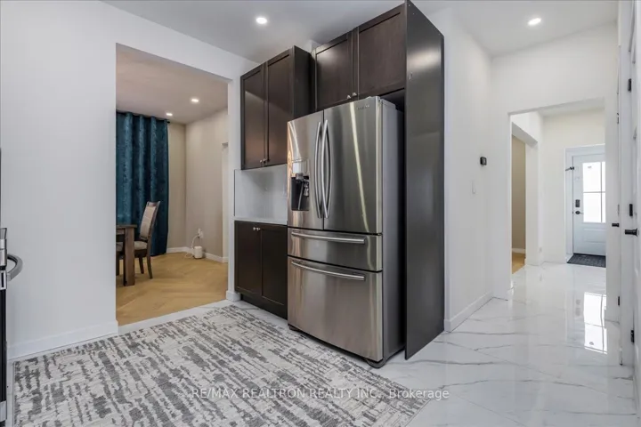 +"PublicRemarks": "This beautifully restored 2,600+ square foot two-storey home blends timeless elegance with modern comfort, offering exceptional craftsmanship and thoughtful updates throughout. The stunning living room showcases a dramatic 17-foot coffered ceiling and rich hardwood floors laid in a classic herringbone pattern that flow seamlessly into the expansive dining room, creating a refined and cohesive space ideal for entertaining. The kitchen is designed to impress, featuring quartz countertops, a stylish 2 x 3 porcelain tile backsplash and flooring, a spacious pantry, abundant cabinetry, and a two-seat waterfall breakfast bar perfect for casual meals or gathering with guests. A convenient main floor laundry room, private office, and beautifully finished two-piece bath add everyday functionality and flexibility. A hardwood staircase with wrought iron pickets leads to the second level, where four generously sized bedrooms, nine-foot ceilings, laminate flooring, and abundant pot lighting create a bright and inviting atmosphere. The main bathroom offers a double quartz vanity, glass shower with porcelain tile surround, and a luxurious rainfall showerhead for a spa-like experience. The third floor presents a versatile loft-style recreation room with a cathedral ceiling, dedicated office space, and extensive lighting, making it ideal for relaxing, working, or entertaining. Step outside to a fully fenced backyard with durable 6 x 6 posts and a matching shed, providing privacy and additional storage. Extensive updates completed in 2024 and 2025 include a new furnace, steel roof, windows, doors, flooring, trim, kitchen, bathrooms, and full basement waterproofing. Meticulously renovated, this move-in-ready home delivers space, style, and quality with no detail overlooked."