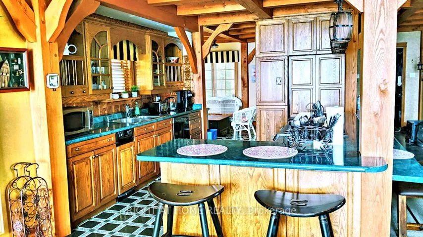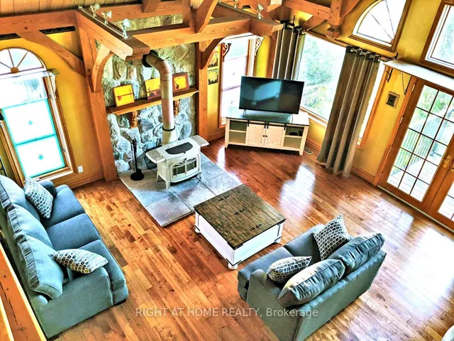 +"PublicRemarks": "Stunning Timber Frame Waterfront - Georgian Bay.Experience breathtaking sunset views from this unique 4-bedroom, 3-bathroom year-round waterfront house. This architectural gem features soaring ceilings, expansive windows with lake views, and a seamless open-concept design.Main floor highlights: large open-concept kitchen and a living area featuring a cozy wood-burning stove; a separate, cozy family room provides the perfect additional spot for relaxation. Additional bedroom (perfect for guests or an office),a convenient powder room.A second-floor sitting area overlooks the main living room including a private balcony and a private master sanctuary featuring a unique, open-concept en-suite. This space is designed with an elevated entrance and a partial feature wall, blending style with architectural interest Outdoor Living: Large deck with glass railings, waterfront backyard, and a private barrel sauna steps from the lake.Income Potential: Lower level features a self-contained 1-bedroom suite with a separate entrance and a living room currently featuring a pool table.The fourth bedroom is also located on the lower level but is situated on the opposite side of the floor, ensuring it remains separate from the suite for maximum privacy. The laundry room is also conveniently located on this lower level.Recent Upgrades:New roof and gutters installed in 2021.Electrical system has been upgraded to 200 AMP for modern efficiency.Barrel outdoor sauna for relaxation, just steps away from the lake.Convenience: Fully connected to municipal utilities for hassle-free living.Versatility: Ideal as a permanent home or a serene getaway.Rare opportunity for a permanent residence or serene getaway. Book your private viewing today!"