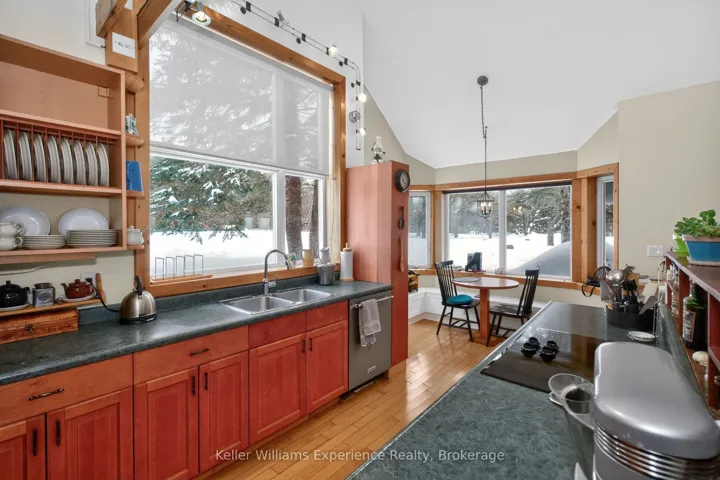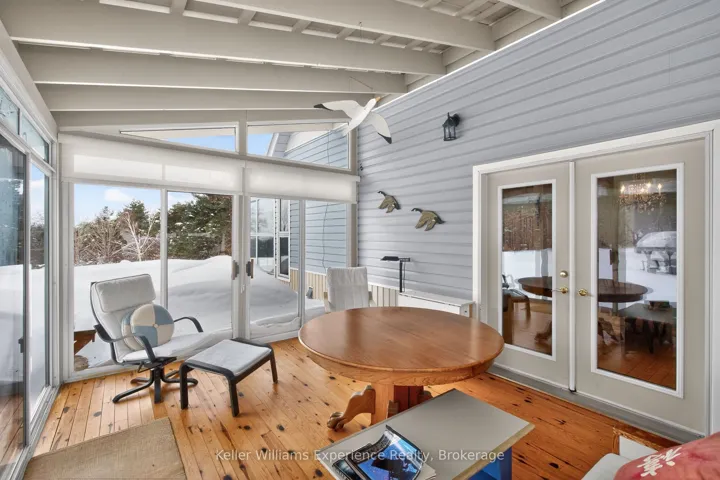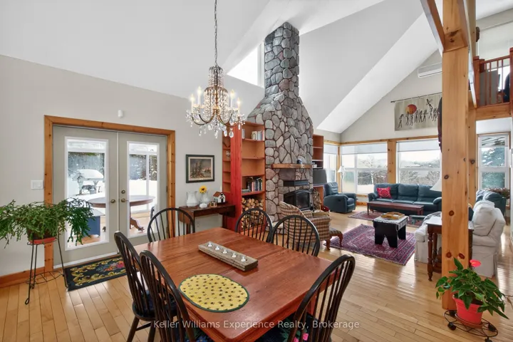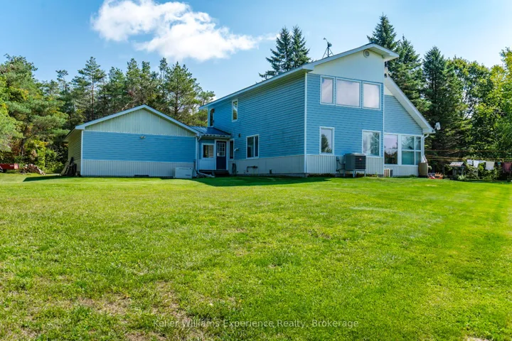 +"PublicRemarks": "Welcome to your private 50-acre country retreat with stunning views of the Escarpment. Surrounded by mature forest and natural beauty, this exceptional property offers privacy, tranquility, and refined country living. The thoughtfully designed home features soaring ceilings and an open concept main floor connecting the kitchen, dining, and living areas, anchored by a striking floor-to-ceiling stone wood-burning fireplace. A bright three season sunroom overlooks beautifully manicured gardens and expansive grounds. The main level offers two spacious bedrooms, a full bathroom, and a convenient main floor workshop/utility. Two additional bedrooms and a second full bathroom are located on the upper level, along with generous storage throughout. Year-round comfort is provided by forced-air propane heating, a heat pump, air conditioning, on-demand hot water, an iron filtration system, and a backup generator. Outdoor features include a solar-heated in-ground pool and over 2 km of trails for year round recreation. A former Christmas tree farm at the rear of the property adds to its charm. A two car garage provides ample storage, and the property is ideally located just minutes from Penetanguishene, Midland, and local amenities offering peaceful rural living with modern comforts."