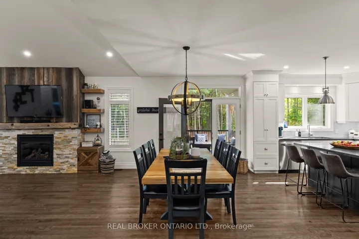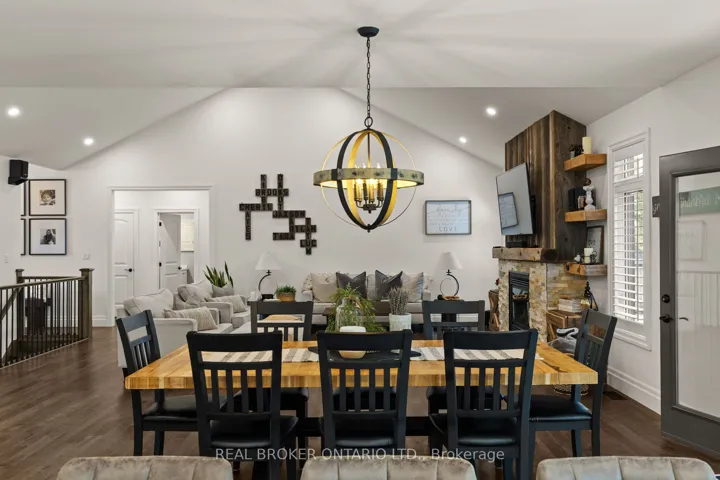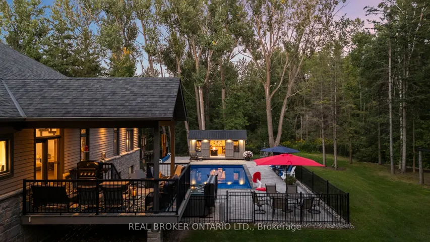 +"PublicRemarks": "Your Private Resort, Every Day of the Year. Tucked away on 2.5 acres of mature trees and rolling landscape, this custom-built home isn't just a place to live - its a lifestyle. From the moment you arrive, youll feel the peace and privacy of country living, all while being steps from walking trails and minutes from town conveniences. Inside, soaring vaulted ceilings and a floor-to-ceiling propane fireplace set the tone for gatherings with family and friends. The open-concept design flows seamlessly from the living and dining area into a chefs kitchen with quartz countertops, extended cabinetry, stainless steel appliances, and a striking glass backsplash. Every detail has been crafted for both function and style. The main floor offers four bedrooms, including a primary suite designed as a true retreat, complete with a spa-like 5-piece ensuite and walk-in closet. The finished lower level with private garage entrance extends the lifestylewhether you need a guest suite, home gym, or office. A 5th bedroom, 3-pc bath, and expansive mudroom with storage make the space versatile and practical. Step outside and discover why this property is truly exceptional. A saltwater pool glistens in the sun, paired with a hot tub and covered deck that invite you to host summer parties, quiet evening dinners, or simply unwind after a long day. With walking trails at your doorstep and a backyard that feels like a private resort, this home delivers a lifestyle most only dream of. Luxury, privacy, and connection to nature this home is more than a residence. Its where family memories are made, friends gather, and every day feels like a getaway."