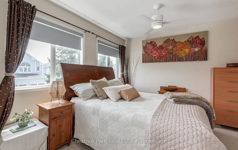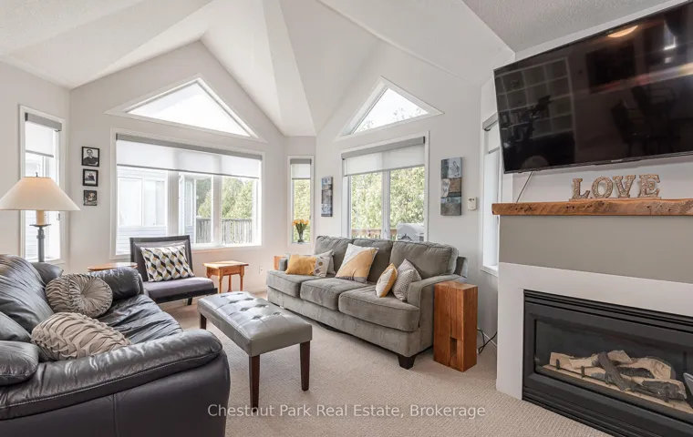+"PublicRemarks": "OPEN HOUSE Sunday Apr. 26th - 2 - 4 PM - Welcome to this beautifully maintained 4 Bedroom, 3 Bathroom home offering the perfect balance of comfort, convenience and low-maintenance living in one of Collingwood's most desirable communities. Ideal for full-time living or a weekend retreat, this bright 2 storey residence enjoys peaceful views over a tranquil pond and the 9th fairway at Cranberry Golf Course. The thoughtful layout offers 3 bedrooms on the main floor including a spacious primary suite with 3-piece ensuite and walkout to a large upper/lower deck (2021) overlooking the serene backyard, providing comfortable space for family or guests. A 4th bedroom w/4-piece semi-ensuite on the upper level could also be your primary bedroom for convenient one-floor living. Upstairs, the open concept living area features a cathedral ceiling in the living room, plenty of expansive windows throughout that fill the home with natural light and cozy gas fireplace for fall/winter evenings. The renovated modern kitchen is both stylish and functional with floor-to-ceiling cabinetry, quartz countertops and stainless steel appliances, ideal for entertaining or relaxed everyday living. The reading nook area could become your formal dining area once the bookcase is removed. Step outside to the expansive upper deck off the kitchen, perfect for outdoor dining or simply enjoying the peaceful surroundings overlooking the pond. Updated patio doors (2020) and bathrooms, generous bedroom closets and meticulous care throughout make this home move-in ready. Residents enjoy access to a seasonal outdoor pool, landscaped common areas, snow removal and exterior maintenance allowing more time to enjoy your four season lifestyle Southern Georgian Bay. Located minutes to Blue Mountain skiing, Niagara Escarpment hiking, golf, trails, Georgian Bay waterfront activities, boating, paddle boarding & water sports and downtown Collingwood's boutique shops and gourmet restaurants."