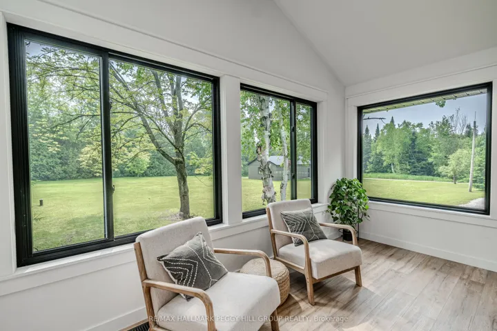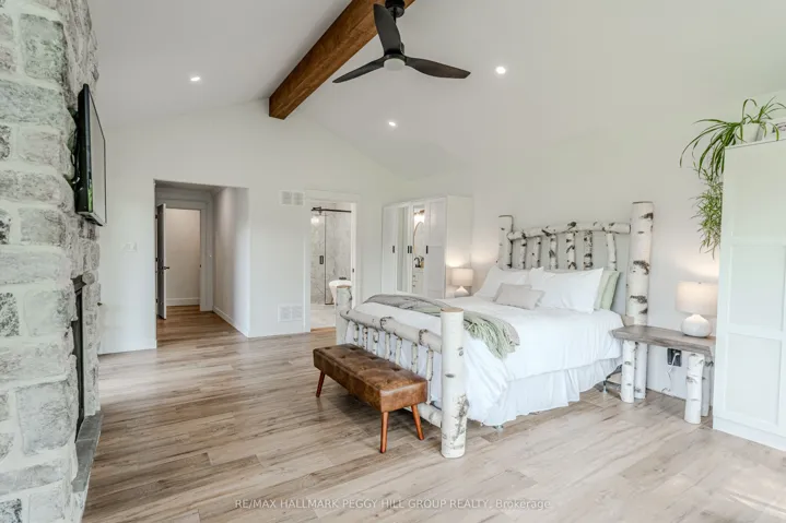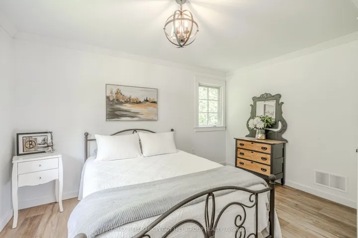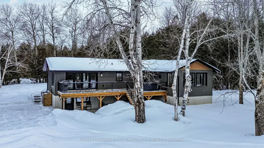 +"PublicRemarks": "SECLUDED COUNTRY BUNGALOW ON OVER 2 ACRES WITH UPSCALE FINISHES, HOT TUB, 4-CAR GARAGE & MOVE-IN-READY LUXURY! Think of the country home you keep saving in your Pinterest inspiration folder, a bungalow on over 2 acres of private countryside with a turnkey interior of designer finishes and a backyard made for entertaining and unwinding with tree-lined views. Arrive along a long private drive to striking curb appeal, where rich wood beams and black-trimmed windows frame a covered front porch set against board-and-batten style vinyl siding, with a detached 4-car garage or shop echoing the same modern look for vehicles or hobby space. Extensively renovated, the open concept layout offers over 2,800 finished sq ft with luxury vinyl flooring, pot lights, crown moulding, and soft neutral paint tones. The kitchen offers white cabinetry, quartz countertops, open wood shelving, stainless steel appliances, and a wood-toned island with breakfast bar seating that flows into a bright dining area framed by four-panel garden doors opening to the elevated back deck. The living room centres around a propane fireplace in a floor-to-ceiling stone surround with built-in cabinetry and open shelving. The vaulted primary bedroom stands out with a wood beam accented by pot lights, its own fireplace in a stone surround, generous windows, a luxurious ensuite, and excellent storage, including two built-in wardrobe systems, plus a private walkout that places the hot tub only steps away. The finished walkout basement extends the living space with a recreation room, full bathroom, two additional bedrooms, and a laundry room finished with live-edge style counters and a subway tile backsplash. Packed with high-end upgrades, a stylish turnkey interior, an oversized garage, and real acreage privacy, this is the kind of country #Home To Stay that leaves you wondering what more you could want."