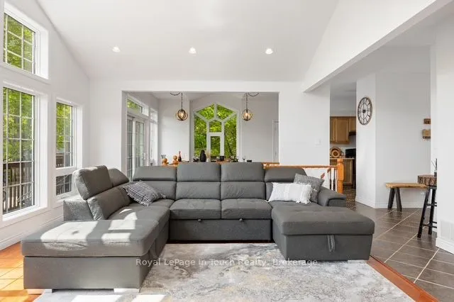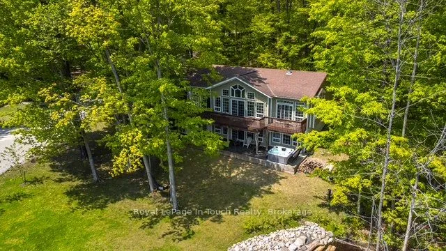+"PublicRemarks": "Beautiful 4-bedroom lakefront home with over 2,600 sq. ft. of living space, set on scenic Farlain Lake and surrounded by a park-like, tree-lined lot. Enjoy stunning water views from the spacious 620 sq. ft. cedar deck, complemented by a granite boulder retaining wall and a large lower terrace.This well-maintained property features durable Hardy Plank siding, a detached 1.5-car garage, and a screened-in porch-perfect for relaxing outdoors. Inside, the fully finished walkout basement, vaulted ceilings, and 9-foot ceilings create a bright and open atmosphere. The home offers three bathrooms, an elegant oak staircase, and a blend of maple hardwood and vinyl plank flooring throughout. Additional highlights include a backup 18k W generator, natural gas heating, high-speed internet, and multiple walkouts from three principal rooms. The spacious family room with a cozy gas fireplace makes it ideal for year-round living. Located just minutes from local amenities, a playground, park, the OFSCA trail system, and the hiking trails of Awenda Provincial Park, this Aberdeen MK II Viceroy model is ready for a new family to move in and start making lasting memories in 2026. Don't miss this opportunity!"