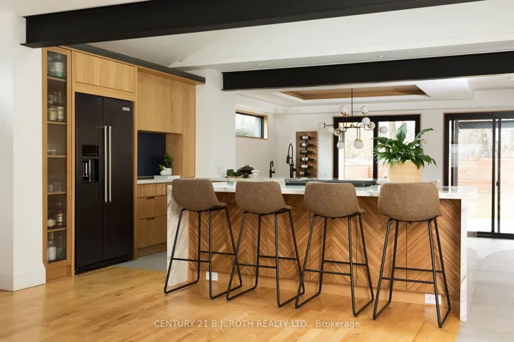 +"PublicRemarks": "Stunning Mid-Century Modern Masterpiece, Fully Renovated in Prestigious East End. Prepare to be impressed by the flawless execution of high end building. This home has been reimagined with a dramatic 3-storey addition creating a one-of-kind living experience that blends sophisticated, midcentury modern flair with state-of-the art comfort. From the soaring ceilings to the spa-inspired ensuite, every detail has been meticulously curated. Discover unique touches like statement brick wall and sophisticated covered low-slope front entry that enhances the homes curb appeal.Featuring Dramatic, Sun-drenched, open concept, great room with awe inspired aircraft cables and vaulted ceiling gives a sense of volume. The cupola and skylight bathe the area in natural light, highlighting the custom fluted cabinetry of the new designer kitchen and stylish slat wall feature. A true centerpiece, with gorgeous waterfall countertops and ample storage perfect for daily life and grand-scale entertaining. Ascend to your private oasis the master suite features a custom-built king size bed frame and is flooded with light from oversized windows. The lower level spa-like bathroom is a revelation, complete with luxurious stone finishes, soaker tub, custom vanity, steam shower and heated flooring. Enjoy beautiful warm days and cozy evenings on the heated, covered porch, overlooking a spacious backyard adorned with mature trees- a perfect setting for entertaining. Rest easy with a complete suite of new mechanicals, incl: new furnace, a/c, a ducted mini split for optimal climate control. The envelope is fortified with rigid interior insulation, delta wrap water proofing, insulated foundation, new sump pump, and new municipal sewer line, ensuring efficiency and peace of mind for years to come. A rare opportunity to own a bespoke architectural gem. Book your private viewing today. Owner is licensed realtor."