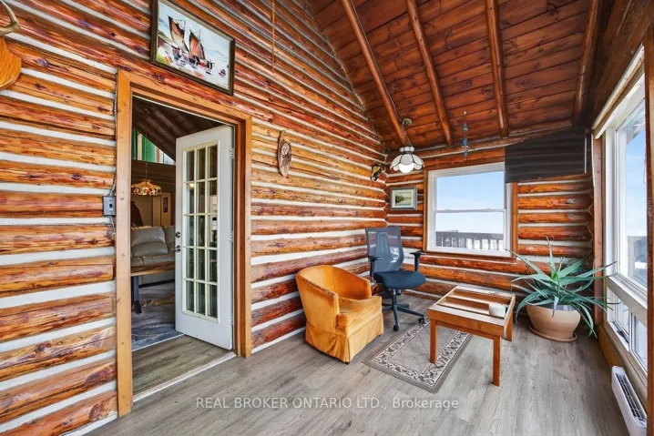 +"PublicRemarks": "Over 8 acres of land, approximately 500 feet of waterfront, and a spectacular view across Matchedash Bay. This year-round log home delivers the kind of privacy most people only dream about, fronting onto 300 acres of Crown Land with fishing, hunting, hiking, and boating right out your door.The main floor features a primary bedroom with walk-in closet and walkout to a covered front deck. The kitchen includes all appliances and walks out to a side deck. An open concept great room and dining area flow naturally through the home, while a rear sunroom captures the waterfront view beautifully. Upstairs, 3 additional bedrooms provide plenty of room for family or guests.The boathouse is a standout, offering finished living space with sleeping accommodations, a bathroom, and kitchenette on the upper level, with storage below. A detached oversized single garage rounds out the outbuildings. Practical upgrades include a full backup generator, UV water treatment, and tankless hot water.This is a rare opportunity to own a true waterfront retreat with serious acreage and Crown Land at your doorstep. Book your private showing today."