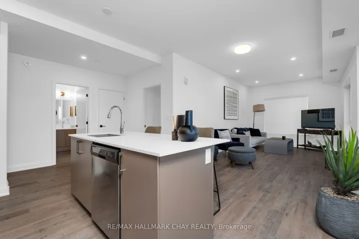 +"PublicRemarks": "PRESENTING LUXURIOUS PENTHOUSE CONDO LIFESTYLE AT 58 Lakeside Terrace. Spacious 1398 sq.ft. penthouse with breathtaking views of Little Lake from 500 sq.ft. terrace. Unique suite with open concept layout, three bedrooms, two baths, ensuite laundry (stacked), two parking spaces (owned) and exclusive storage. Tasteful neutral decor throughout with large windows that frame a stunning view, and bathe the space in natural light! Modern chef's kitchen features oversized island, quartz countertops and a walkout to expansive terrace, making indoor-outdoor living effortless. Remote-controlled blinds for added convenience. Huge terrace, accessed from kitchen / living room and primary bedroom, with panoramic views overlooking beautiful Little Lake. The primary suite features lake views, 2 walk in closets, ensuite 5pc bath, and direct access to the terrace. Extend your living space outdoors onto your private oversized balcony - a perfect zone for family time, entertaining, dining al fresco, or simply a private space where you can unwind after a hectic day. Included are 2 underground parking spots. Premium amenities are yours to enjoy - state-of-the-art gym, pet washing station, roof top patio with stunning views, guest suites, games room, visitor parking. Perfectly located with easy access to Hwy 400/11, Georgian College, Royal Victoria Hospital, Allandale Waterfront GO Station, Lake Simcoe's Kempenfelt Bay, shopping, casual and fine dining, services, entertainment, all season recreation and more! Take a look today to appreciate the luxury and convenience of condo life - this upgraded penthouse is truly a move in ready gem!"