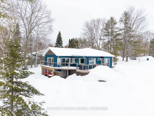 +"PublicRemarks": "This year round waterfront home has had many upgrade of late and is move in ready. There is easy access to Hwy 11 and is on a year round municipal road. There is approx 189 feet of frontage and the home has 3 bedrooms and 2 bathrooms. The deck is oversized for entertaining and the windows have been replaced to enhance the elevated panoramic views of the water. The livingroom/diningroom are combined and have a gas fireplace to enjoy. The adjoining family room has an abundance of windows also overlooking the water. There is also a "flex space" downstairs that could be a yoga room, office, spare bedroom - bring your imagination and loads of storage. Also, high speed internet is available. Some of the history with improvements - garage in the 1980's, family room June 1989 and primary suite 1988."