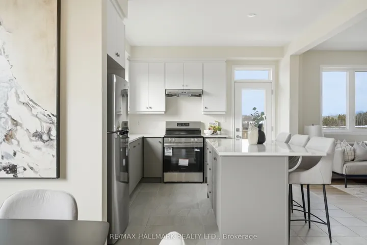 +"PublicRemarks": "Last remaining Corner-Unit freehold townhome backing onto a pond! 1,997 sqft above grade with no POTL or monthly fees. Situated on a generous 35' x 93' lot with no sidewalk, this bright and spacious home offers parking for two on the driveway and beautiful views from nearly every window. The main level is filled with natural light and features an upgraded kitchen with quartz countertops, oversized sink, and stylish two-tone cabinetry, open to a generous living room overlooking the pond and a dedicated dining area. A stunning main-floor office with large windows makes working from home a dream. Upstairs are four spacious bedrooms, including one with massive windows ideal for a second office or creative space. The primary suite enjoys tranquil pond and nature views and features a 4-piece ensuite with double sinks and a beautiful shower. With no carpet throughout and a bright basement with high ceilings and large windows ready for future expansion, this is a rare opportunity to own the last Corner-Unit with pond views in the community. Pre-delivery inspection and Tarion Warranty available. Eligible First-Time Home Buyers may receive up to an additional 13% savings through the proposed Government FTHB Rebate Program (subject to eligibility and program approval)."